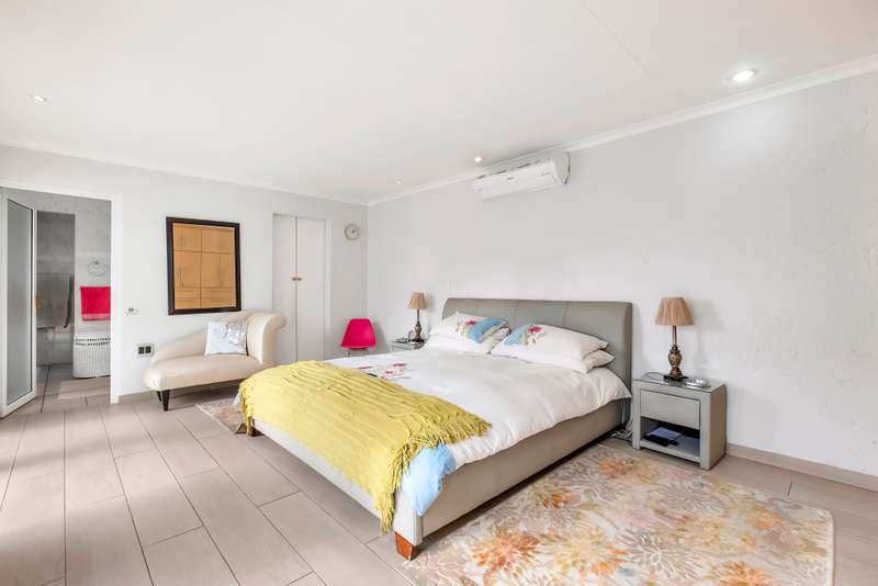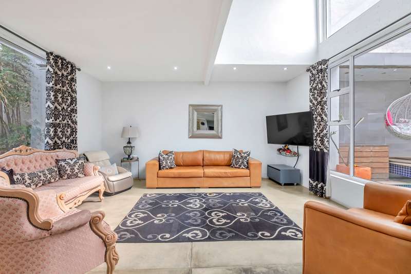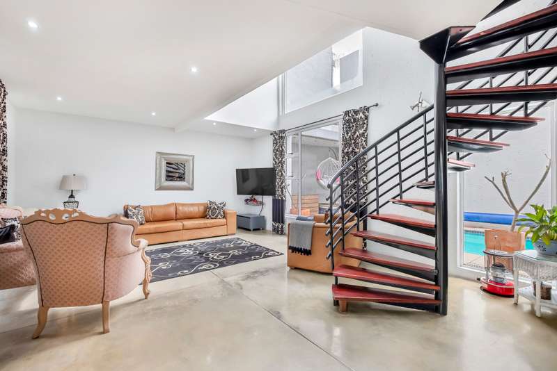 Located in a peaceful complex of 3, this beautifully maintained double storey 4-bedroom home is ideal for a growing family. The property with a total of 276 sqm, consists of a lounge, open plan dining room. Modern kitchen with eye level oven, gas stove top, scullery. Guest toilet. Indoor glass enclosed garden. The focal point of this property is the striking architectural spiral staircase leading up to the bedrooms. Principal bedroom with full ensuite bathroom, walk in dressing room/wardrobe, with its own private balcony. Scenic view overlooking the suburbs of JHB. 2nd bedroom with en suite bathroom, walk in wardrobe/closet. 3rdbedroom and 4th bedroom. Both having doors leading onto balcony area. 3rd Bathroom. Linen room. Plenty cupboard space. Walkout balcony. Solar heated swimming pool. Entertaining covered patio. Domestic quarters with bathroom. Storeroom. Double garage with storage cupboards. One covered enclosed garage. Off street parking. A total of 5x cars. Special features – Borehole, solar panels, infiltrated water system, inverter, gas geysers. Pre-paid electricity. Air-conditioner in lounge and principal bedroom. Pet friendly complex.