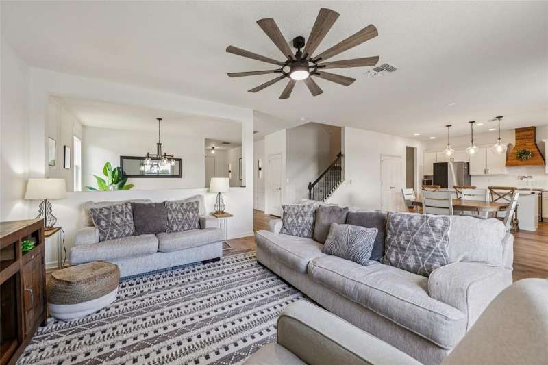 **Ask about a lender provided RATE BUY-DOWN CREDIT on this home!**Seller may consider buyer concessions if made in an offer**Prepare to be impressed by this stunning 5-bedroom, 2.5-bath home in Sawgrass Plantation, offering over 3,000 SQUARE FEET of beautifully upgraded living space and a UNIQUE LAKE VIEW that creates a serene, picturesque backdrop. Combining modern design, thoughtful updates, and a welcoming neighborhood setting, this home truly stands out. From the moment you arrive, you’ll notice the thoughtful EXTERIOR ENHANCEMENTS, including UPDATED front columns and stonework, REFRESHED garage and window trim, and a fully fenced backyard featuring bilateral vinyl fencing, a rear aluminum fence (2024), and NEWLY INSTALLED PAVERS (2024) that extend across the back porch and patio. The UPGRADED IRRIGATION SYSTEM (2025) ensures the lush landscape remains pristine year-round. Inside, the home’s open-concept main floor welcomes you with LUXURY VINYL PLANK FLOORING (2021) and abundant natural light. The Living Room, Kitchen, and casual dining spaces flow together effortlessly, framed by DECORATIVE ACCENT WALLS in the entryway and formal Dining Room (2024) that elevate the home’s character. An UPDATED FIRST-FLOOR OFFICE provides the perfect space for remote work or quiet study. The Kitchen is a true centerpiece, showcasing a FARM-STYLE WOOD HOOD VENT (2024), quartz countertops, stainless steel appliances, refaced cabinetry, and a porcelain farmhouse sink (2021)—a perfect blend of elegance and functionality. Upstairs, the Primary Suite is a private retreat, highlighted by a FULLY REMODELED BATH (2024) with dual sinks, a garden tub, and a step-in shower. The home offers incredible versatility with four additional bedrooms, as well as a FIFTH BEDROOM converted from the attic (2022), ideal for a home office, media room, or guest suite. Tastefully UPGRADED STAIRCASE BALUSTERS and NEW CARPET (2025) provide warmth and comfort throughout the second floor. Every corner of this home reflects attention to detail, from the MUDROOM and HALF BATH on the main level to the high ceilings and modern finishes that define the open layout. Located within Sawgrass Plantation, residents enjoy a LOW HOA and exceptional community amenities, including a RESORT-STYLE POOL, playground, basketball and tennis courts, and scenic walking trails. The neighborhood’s CONVENIENT LOCATION places you near Lake Nona, Orlando International Airport, The Loop Shopping Center, and provides EASY ACCESS to SR-417, SR-528, and the Florida Turnpike. With its elegant upgrades, open-concept design, and SERENE LAKEFRONT SETTING, this Sawgrass Plantation home offers an elevated take on modern Florida living—sophisticated, inviting, and simply unforgettable. Schedule your tour today!