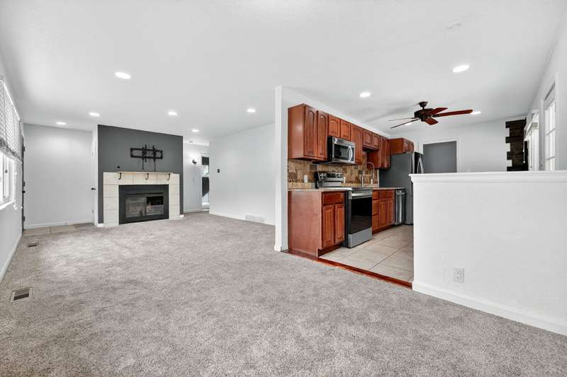 Charming ranch-style home in the heart of Thornton! This beautifully maintained home offers comfortable living with three spacious bedrooms and an updated full bath. Step inside to a bright and welcoming living room with wood-burning fireplace and an adjoining dining area perfect for entertaining. The updated kitchen features granite countertops, newer cabinetry, stainless steel appliances, and tile flooring. A private bedroom area off the living room includes a remodeled bathroom for added convenience. Separate laundry room which accommodates a full sized washer and dryer. Colorado's sunshine on the expansive, partially covered patio overlooking the fenced backyard. The oversized 540-square-foot detached garage and workshop provide plenty of space for storage, hobbies, or projects. Recent updates include a newer roof (2020), carpet, flooring, windows (2021), water heater(2022), furnace (2019), and interior paint. Ideally located near the Thornton Community Center, shopping, dining, schools, public transportation, and major commuter routes-this turnkey home is ready for you to move right in!