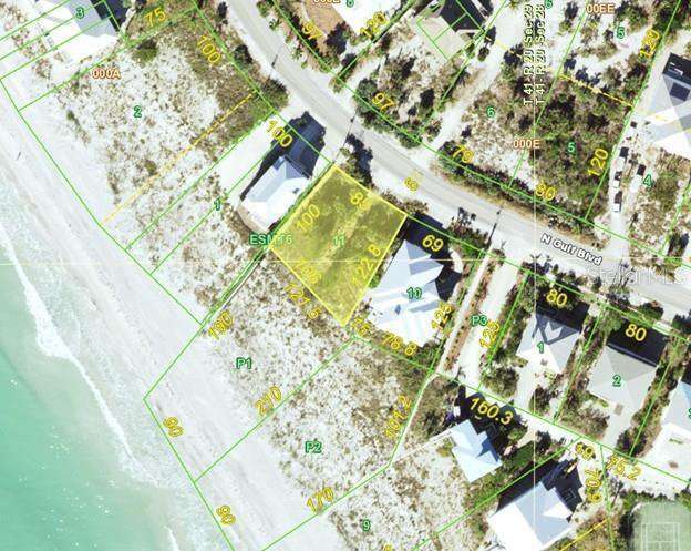 Welcome to Palm Island. This lot located on N Gulf Boulevard has a Coastal Survey and DEP Permit in place for an elevated home with up to 4,854 square feet of air-conditioned living space. House plans and permit are available for review. Amenities including swimming pool, tennis court and common dockage with access to the ICW and the Gulf of Mexico. Amenities are in the process of being updated. This lot offers a partial Gulf View and an adjacent beach access walk way. Take a day to come visit the Island and its beautiful beaches and do an onsite visit to this property - it will be a day well spent. Don't miss this opportunity to build your dream home in paradise. Ariel view of property is outlined and shaded in yellow. Ariel view of property from County records.