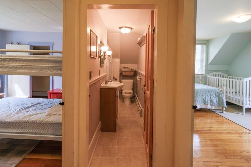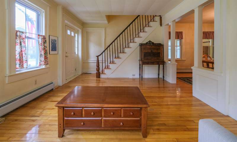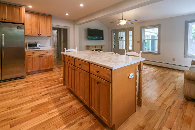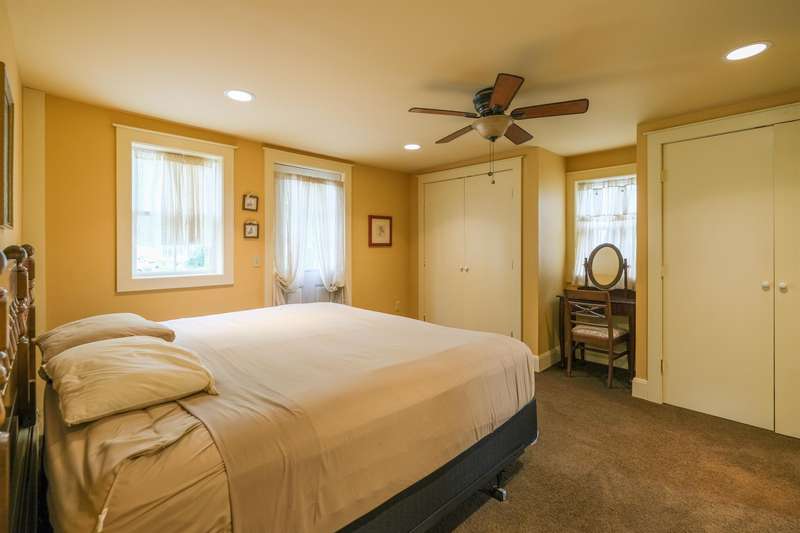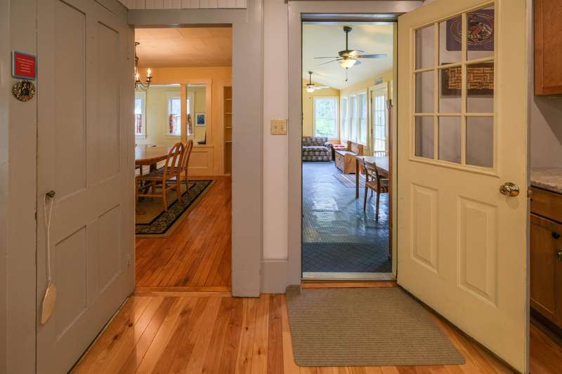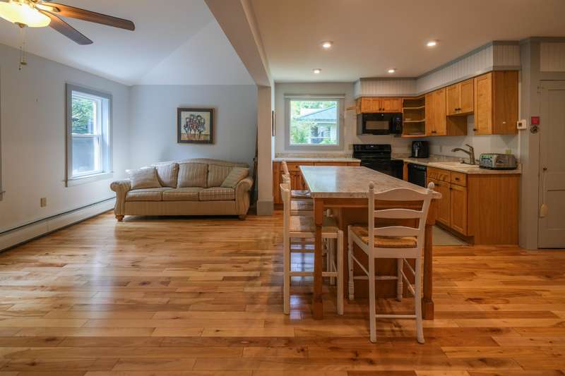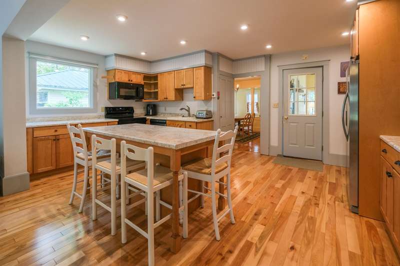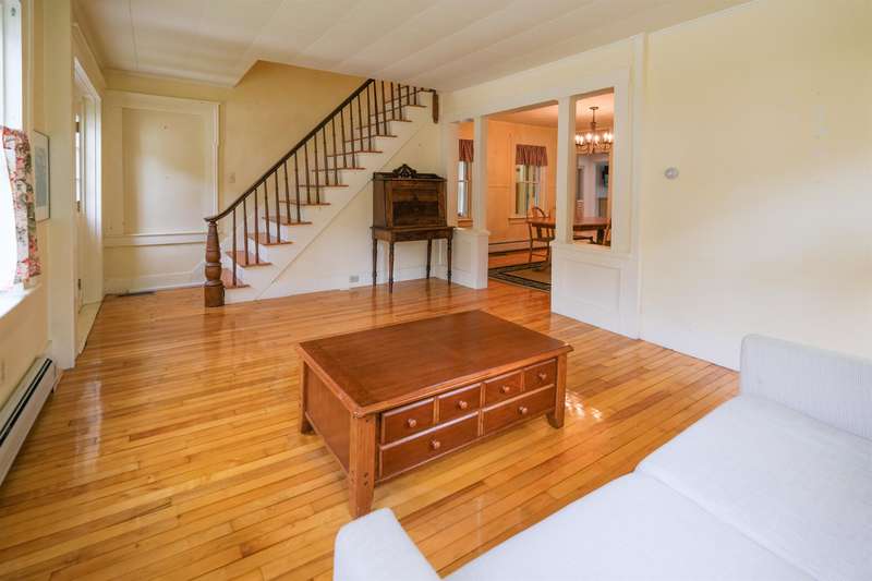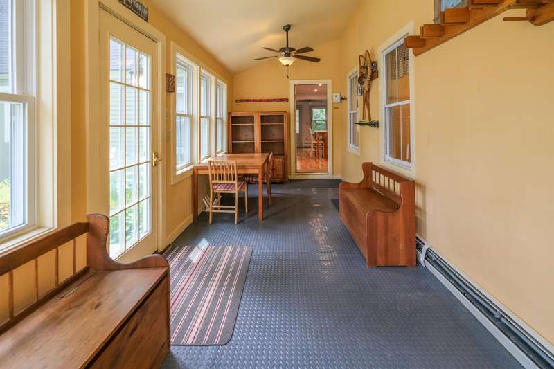 Okemo Village home located at the base of Okemo Mountain. This charming village farmhouse is a must-see! Nestled on desirable High Street, the welcoming sunroom/mudroom entry opens into a bright and cheerful kitchen. The formal dining room off the kitchen flows seamlessly into the living room, creating an inviting space for gatherings. The main level features two bedrooms, two spacious 3/4 bathrooms, and a convenient laundry area. Upstairs, you ll find two additional bedrooms and a full bath. Hardwood floors throughout both levels add warmth and character. A large sunroom with a fireplace and glass slider doors overlooks the backyard, accented by perennial plantings. Conveniently located in the heart of Ludlow Village, this home is close to restaurants, shops, and Okemo Mountain. This is a great location for year-round nature enthusiasts, with nearby ski mountains, lakes, a golf course, hiking trails, and more. Visit the Okemo real estate community today. Taxes are based on the town as