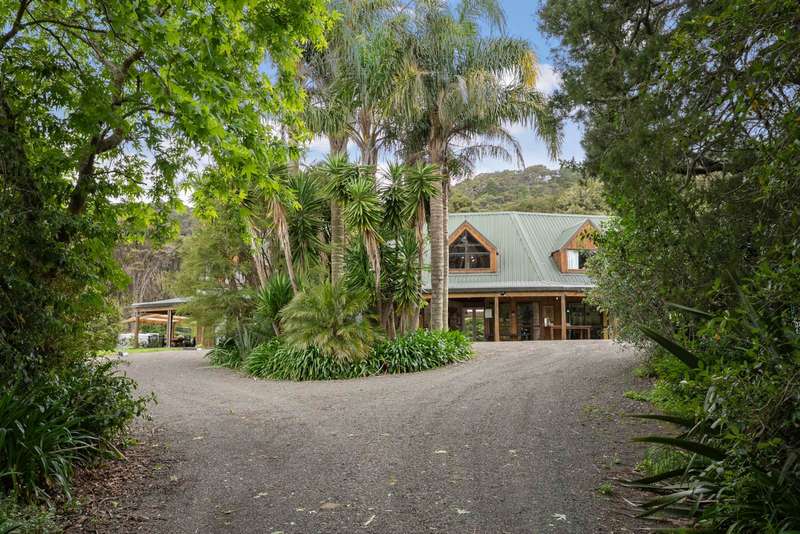 Tucked away at the end of a private lane, this home sits amongst just over ten hectares of preserved native bush and gentle grazing land. It’s peaceful here - surrounded by birdsong, established native plantings, and the feeling of being tucked into your own slice of wild New Zealand. The current owners have poured love into the land, planting around 10,000 natives and approximately 80 fruit trees, the property feels alive, growing and full of future harvests. The home itself is something special. Curved in form and rich in natural raw materials, it’s warm and welcoming with exposed brickwork, Douglas Fir timber features and soft light spilling through the dormer windows above. It’s spacious too - approximately 460sqm in total - thoughtfully laid out with flowing levels and multiple places to gather, unwind, and simply enjoy being home. French doors open into a generous rustic entrance foyer with vaulted, timber-sarked ceilings. From here, the living areas blend seamlessly together, anchored by the character-filled country kitchen at the heart of the home. It features macrocarpa bench tops, a walk-in pantry, wood-burning range, and breakfast bar dining. This space adjoins the open-plan dining area. Three lounges occupy much of the lower level, offering places to spread out while still feeling connected. Year-round comfort is well covered with four heat pumps and one gas fireplace. There are four bedrooms in total. The primary suite is oversized and private, with a picturesque elevated outlook and its own ensuite. The two upstairs bedrooms are also generous in scale, sharing a jack-and-jill bathroom - ideal for family or guests. The downstairs bedroom has its own lounge and bathroom, lending itself well to multi-generational living. There is an additional family bathroom with three showers and water closet plus a separate laundry. The layout of this home and its private position allow for a multitude of lifestyle options: large family living, small family with frequent visitors, Airbnb, bed and breakfast, retreat centre, café/restaurant, or a creative business base (subject to council approval). The current owners have operated a gift shop and hosted team-building courses, for example. Outside, a covered verandah runs the full length of the home - perfect for slow breakfasts, evening chats, or simply watching the tui and kereru move through the bush. It’s a true all-season living space. There’s a large covered area with 36 solar panels that could evolve into additional shedding or business use, plus a double garage and cattle yards. The land offers so much to explore - meandering bush tracks, paddocks for grazing, a freshwater pond/lagoon, two small cabins, and peaceful camping spots beside the running stream. There’s room here for a pony, pets, veggie gardens, play spaces, and outdoor adventure. This is the kind of property that grows with you - where the days move slower, the air smells of earth and leaves, and home feels like a sanctuary. A lifestyle for those who value nature, privacy, and space to breathe.