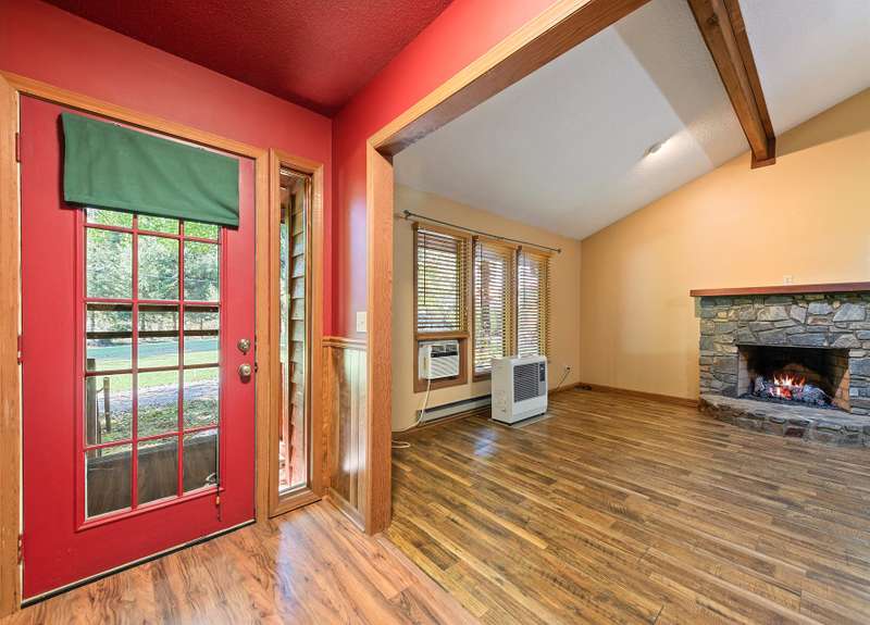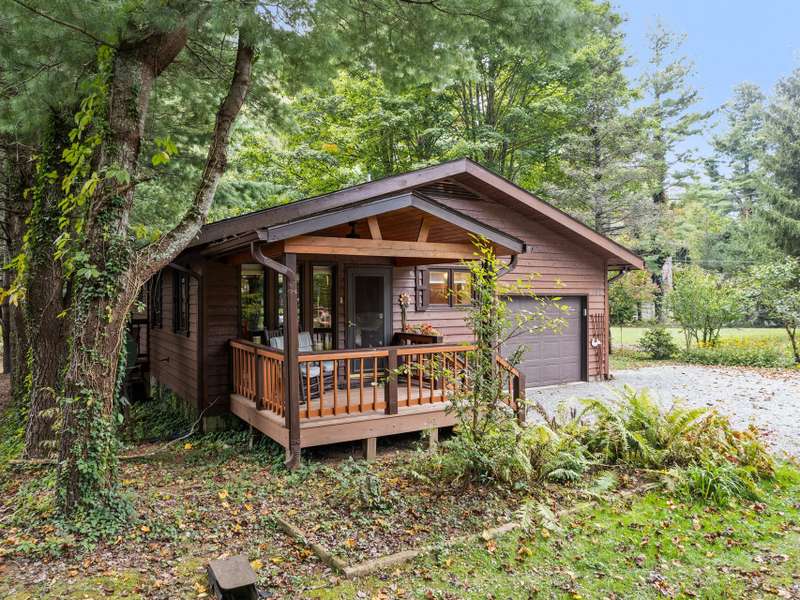 Located just outside the heart of Maggie Valley, this rustic retreat offers the convenience of level paved access and the flexibility of year-round or seasonal living. Only minutes from the Blue Ridge Parkway, Harrah's Casino, Cataloochee Ski Resort, and the Great Smoky Mountains National Park, it's perfectly positioned for mountain adventures. The inviting living room centers around a cozy gas log fireplace, while multiple porches provide relaxing spaces to enjoy the fresh mountain air. A den adds versatile living space, and the single-car garage ensures convenience and storage. All one level living. Don't miss your chance to experience mountain living schedule your showing today!