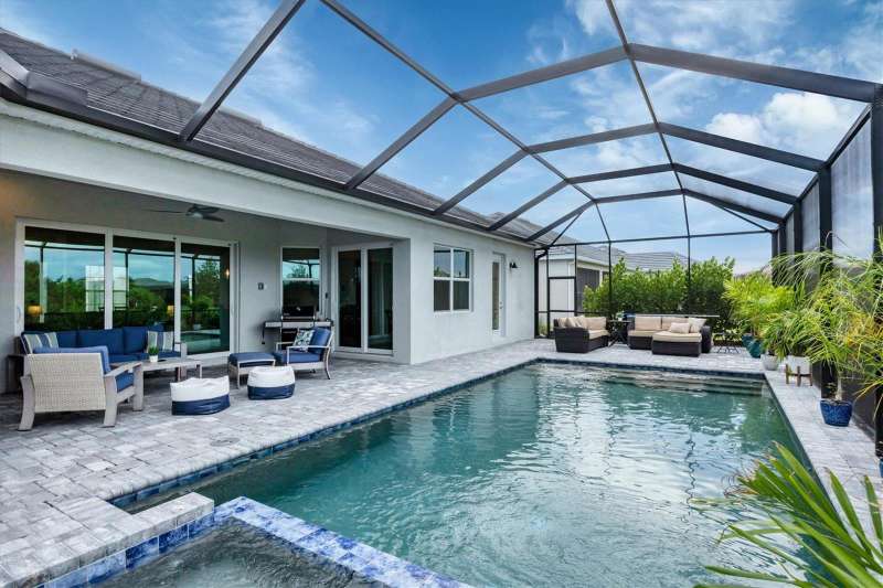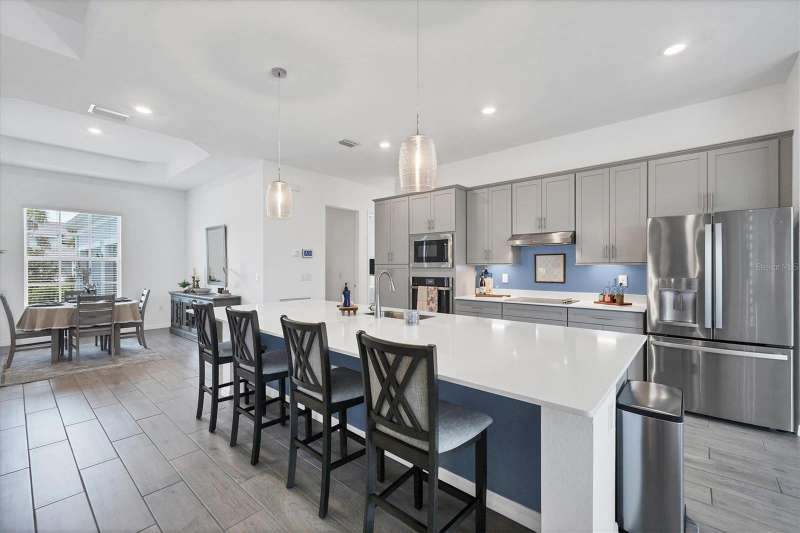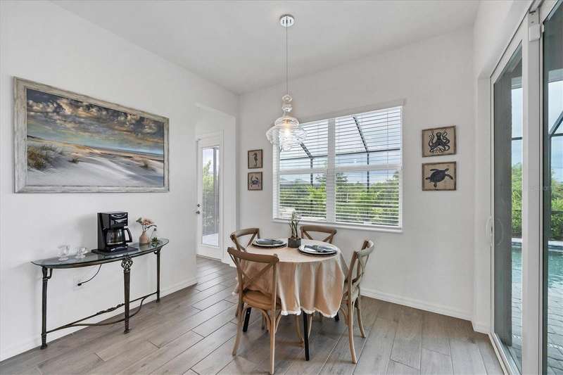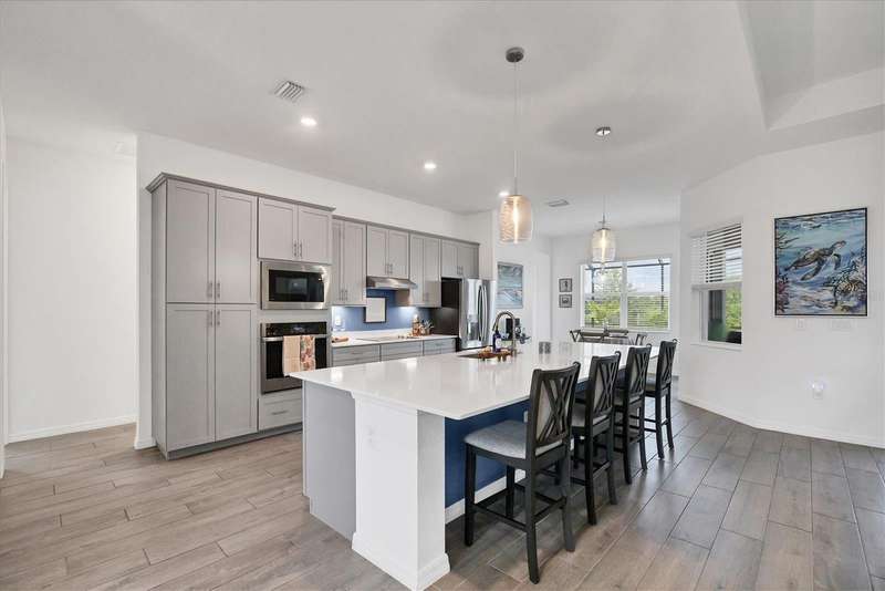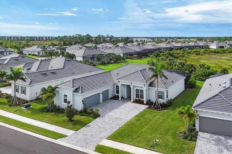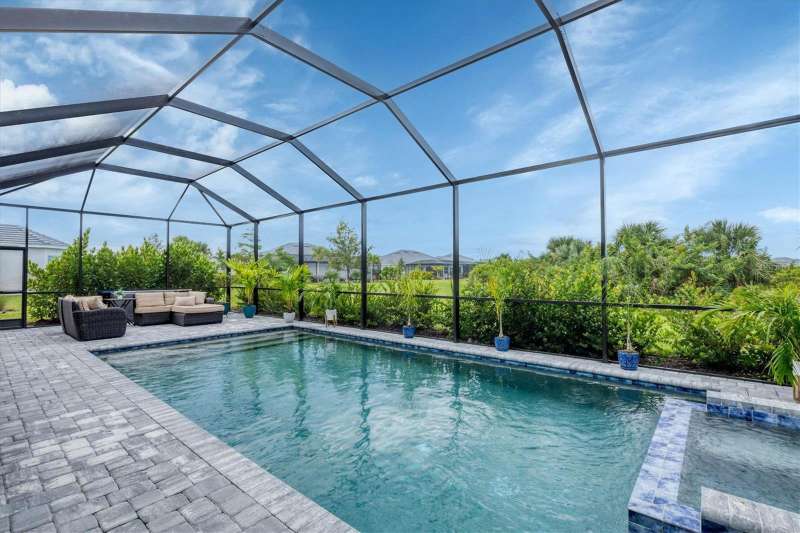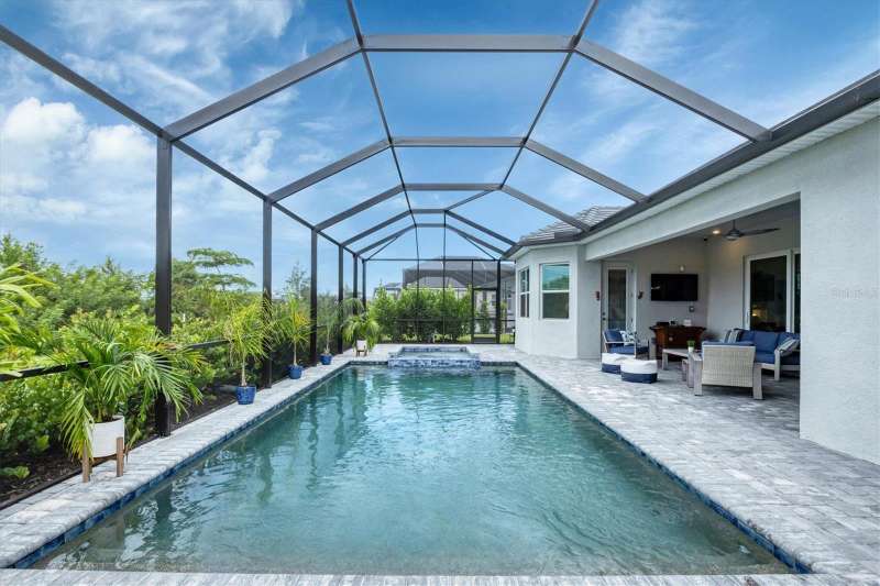 Stately and stunning, this Napoli II model, estate home is located in the premier, resort-style community of Wellen Park Golf & Country Club, with a deeded golf membership—just pay a cart fee to play! Situated on a premium private lot with serene nature preserve views and nestled on a quiet street, this 4BR/2.5BA residence offers the ideal blend of elegance, comfort, and low-maintenance living. Enjoy impact-rated windows and sliding glass doors for your peace of mind, wood-look ceramic tile flooring, soaring ceilings, and a spacious 3-car side-load garage. The open-concept layout flows seamlessly from the chef’s kitchen—featuring quartz countertops, custom cabinetry, and high-end appliances—into generous living and dining areas. Pocket sliders lead to a beautiful outdoor oasis with a heated pool and spa, perfect for entertaining or relaxing in private. The serene and relaxing primary suite is a true retreat with an abundance of space with a reading nook, and a clear view French door leading to your luxurious pool and have blinds between the glass for privacy, and an ensuite bathroom just steps away. The spa-like bathroom includes a soaking tub, large shower, and dual vanities. The 4th bedroom is an added bonus with double French doors which can also be used as den or home office. Two additional guest bedrooms are thoughtfully separated for privacy, ideal for when friends and family come to visit! Living in Wellen Park Golf & Country Club means enjoying resort amenities, including an 18-hole Gordon Lewis-designed golf course, heated community pool, tennis, pickleball, bocce, tiki bar, salon, spa, state-of-the-art fitness center, dog park, social events, and miles of walking/biking trails. Low HOA dues include your golf membership, gated access, lawn maintenance, irrigation water, cable, and internet. Wellen Park Golf & Country Club offers a vibrant lifestyle with world-class amenities, Located just minutes from downtown Wellen Park include dining, shopping, concerts, yoga on the great lawn, and CoolToday Park, home of the Atlanta Braves spring training. Venice’s pristine beaches and historic downtown are just 20 minutes away. Enjoy the ultimate Florida lifestyle with peace, tranquility, and world class amenities all in a maintenance-free, gated community. Just bring your bathing suit—this executive home is ready for you! NOTE: CDD fee is included in the taxes, and your golf membership is included in your HOA dues. HOA fee also includes basic cable and internet. Welcome Home to Wellen Park Golf & Country Club—where every day feels like a vacation!