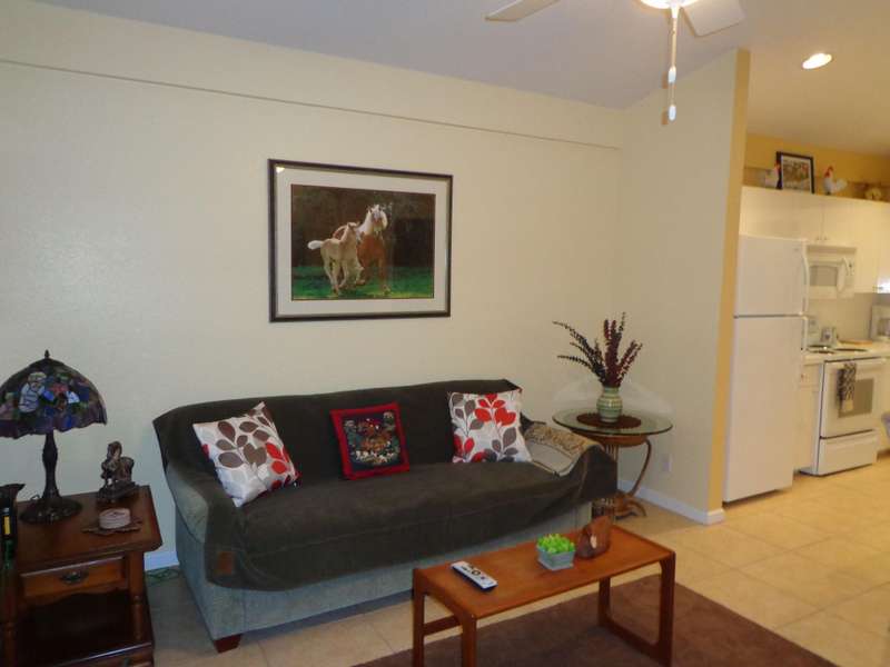 Great furnished rental with screened patio and one car garage - all tile and space to spread out...........Perfect location for shopping and horse shows.