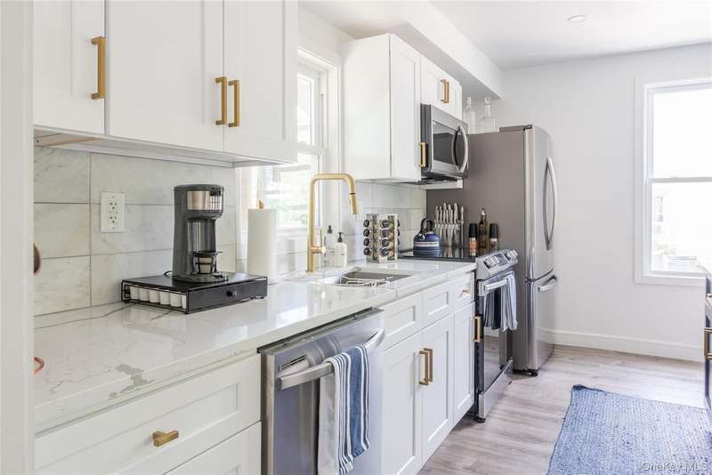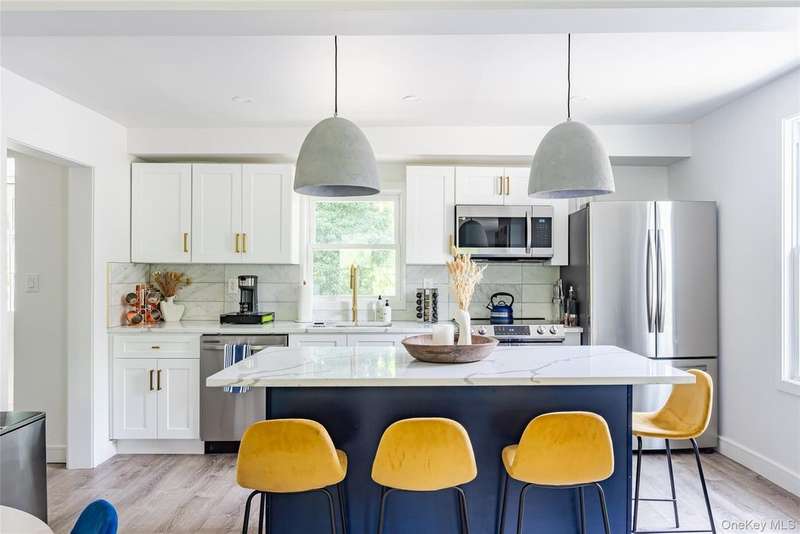Live in style in the heart of Rosendale! This spacious 5-bedroom, 3-bath home is fully furnished with chic, fun décor and move-in ready. The bright, open-concept kitchen features a large island, stone countertops, and stainless steel appliances ? perfect for cooking and entertaining. The main level offers a casual living space for cozy nights or lively get-togethers. The entire second floor is your private retreat, dedicated to the primary suite with a spa-like ensuite that includes a freestanding soaking tub, separate glass shower, and luxe finishes. Upstairs on the third floor, you'll find four additional oversized bedrooms and a shared bathroom with a shower. Enjoy fresh air from the front porch or relax on the back deck overlooking the scenic Rondout River. Located right on Main Street, you're just steps from shops, restaurants, and public transportation. For outdoor enthusiasts, the area offers hiking, biking, kayaking, fishing, swimming, and even mountain climbing. Prefer the arts? Explore the vibrant, creative communities of nearby New Paltz and Kingston. This home is the perfect blend of convenience, comfort, and adventure ? an ideal spot for full-time living or weekend escapes.