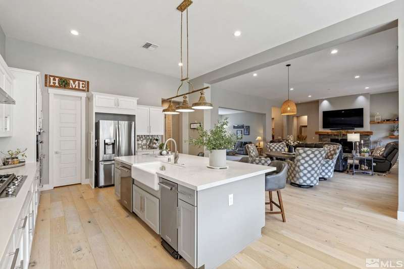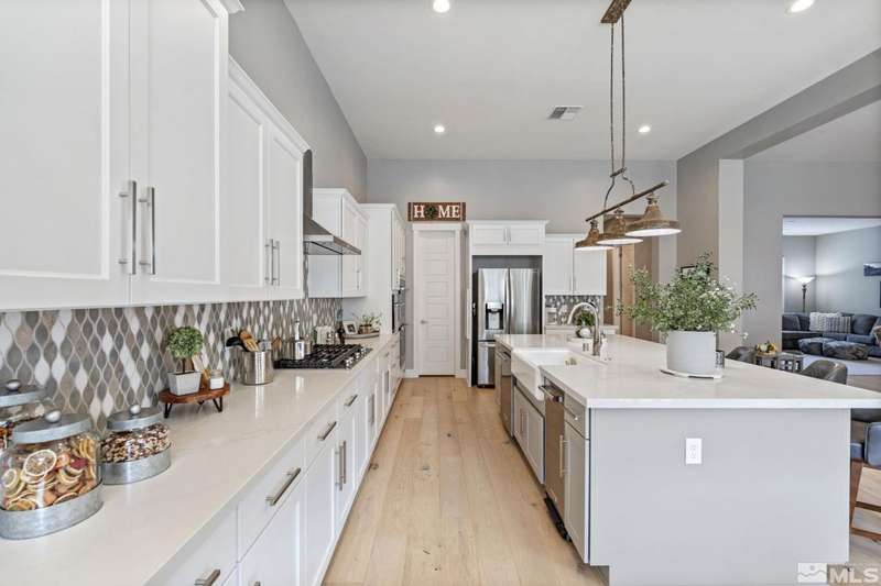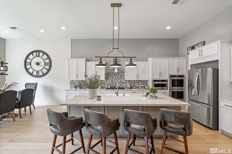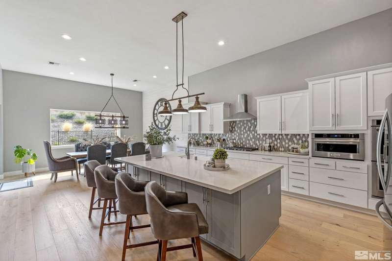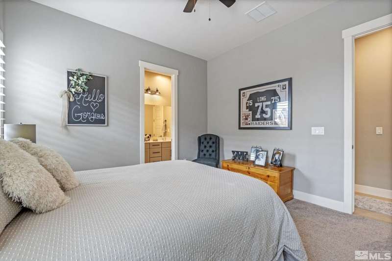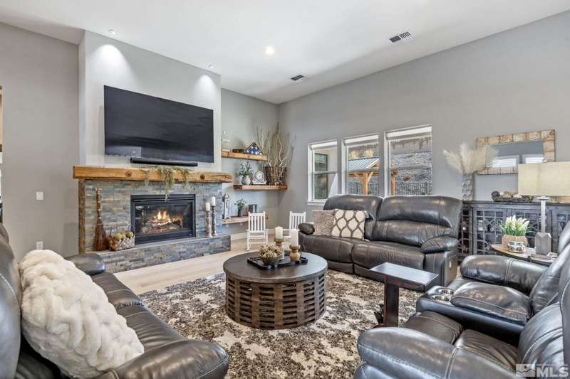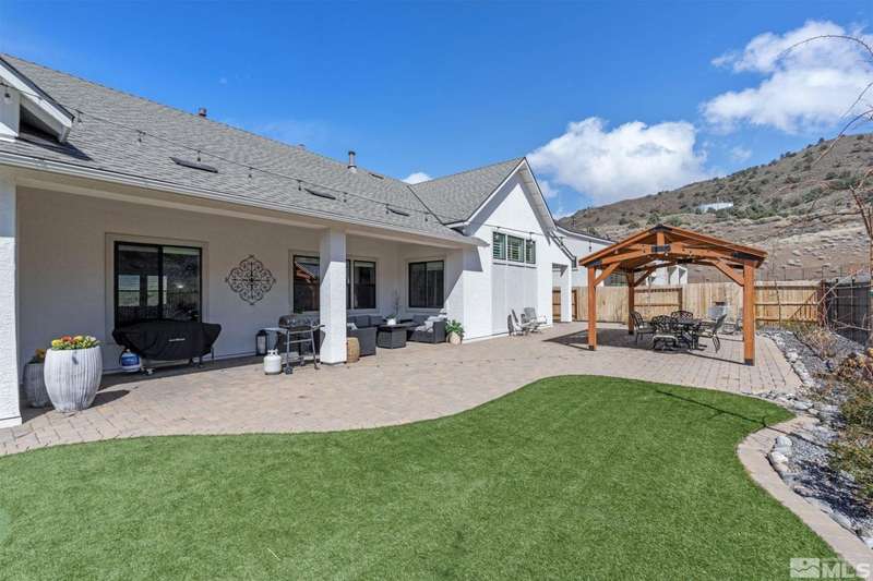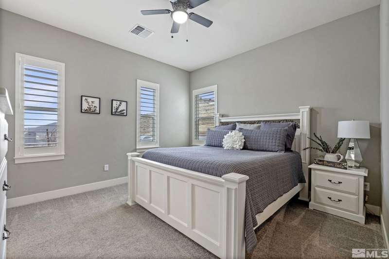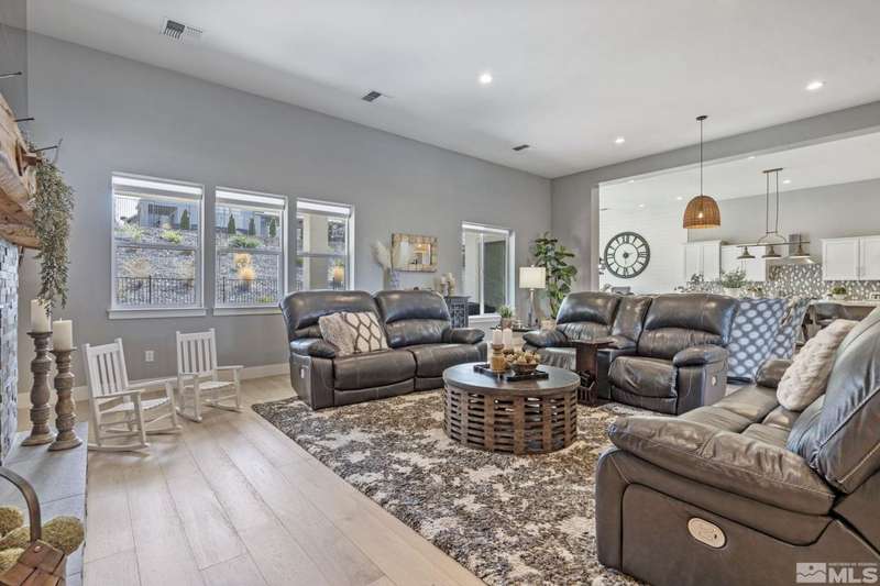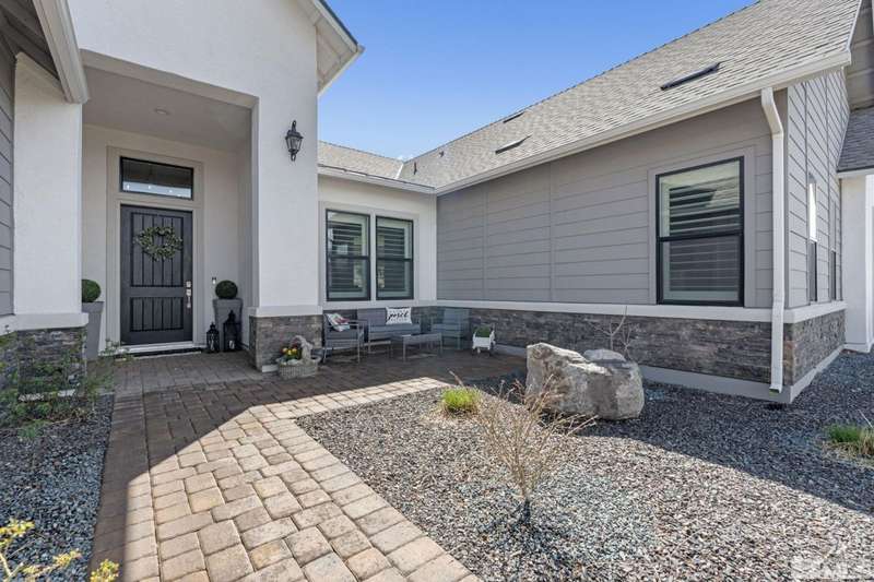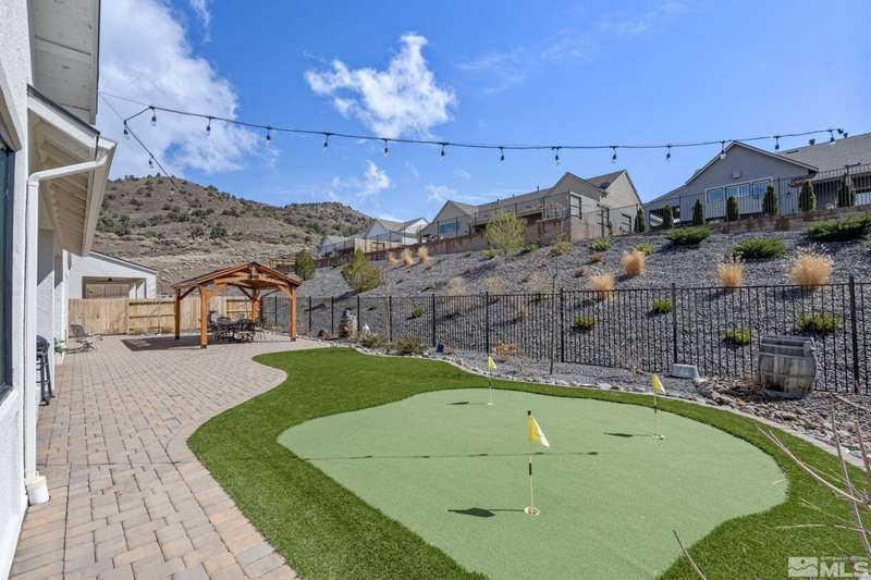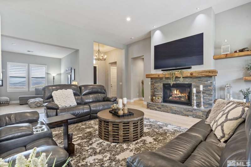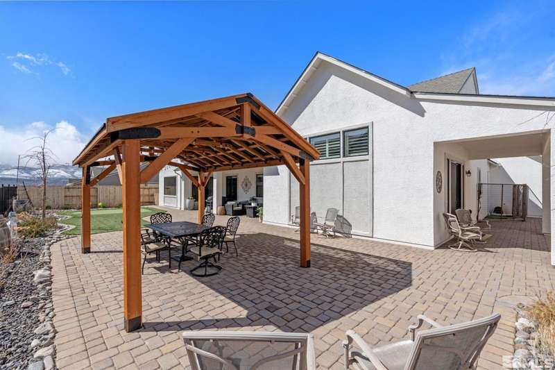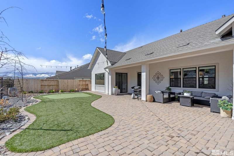 Ridgeline at Carmella Ranch - Refined Luxury, Effortless LivingWithin the exclusive gates of Ridgeline at Carmella Ranch, this elegantly upgraded home blends timeless sophistication with modern ease. Soaring 12-foot ceilings, wide-plank European Oak floors, and smooth hand-troweled walls set the stage for an open, airy design.From the backyard, take in breathtaking views of the Sierra Nevada, including majestic Mount Rose and Slide Mountain-just minutes from the crystal-blue waters and endless recreation of Lake Tahoe.The chef's kitchen boasts an oversized island, soft-close cabinetry, farmhouse sink, double ovens, and a spacious walk-in pantry-seamlessly connected to the dining area with its custom shiplap accent wall.The primary suite is a serene retreat with a spa-inspired ensuite, oversized shower, dual vanities, and private patio access. Multiple outdoor living spaces include a front porch with mountain views, covered back patio, gazebo, and personal putting green.Additional features include walk-in closets in all bedrooms, plantation shutters, 8-foot doors, and designer finishes throughout. Enjoy resort-style amenities-pool, spa, clubhouse, fitness center, and more.This is more than a home-it's a lifestyle.