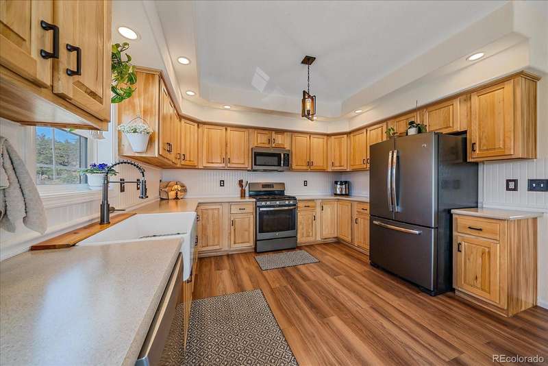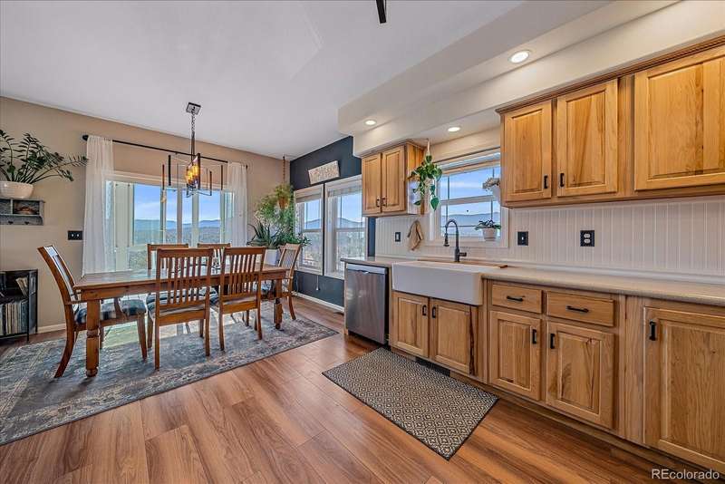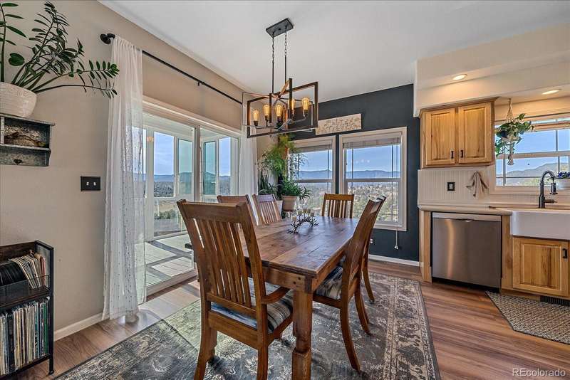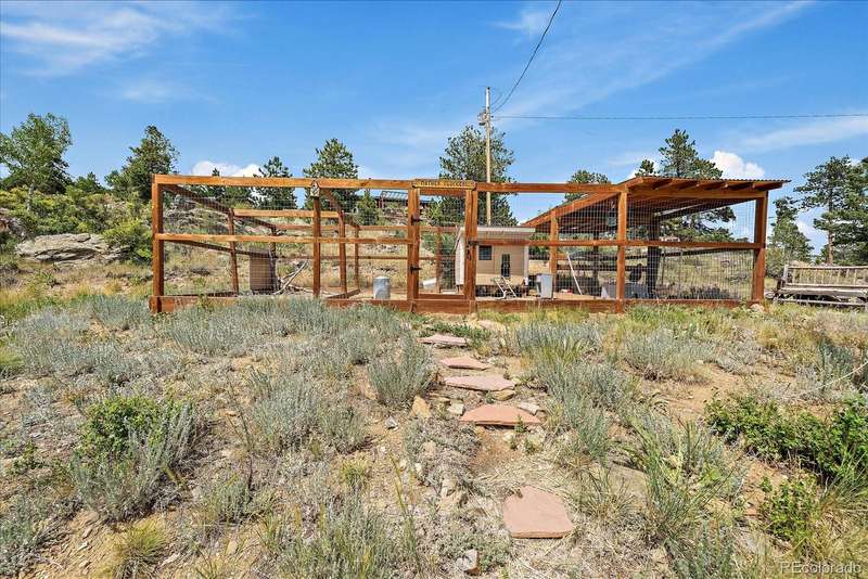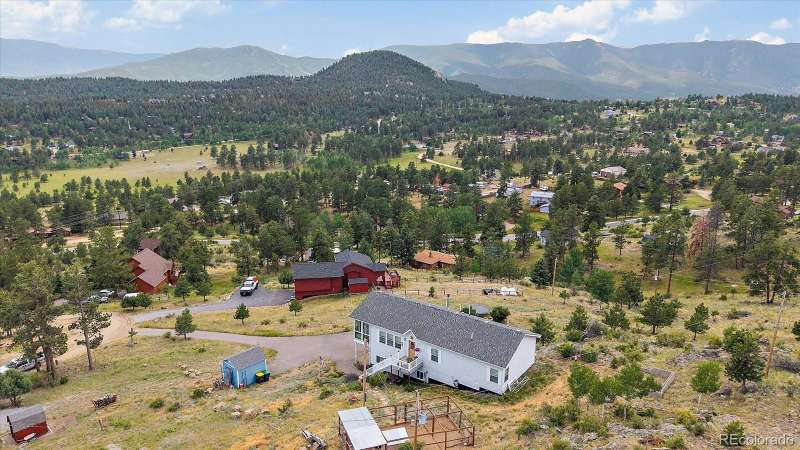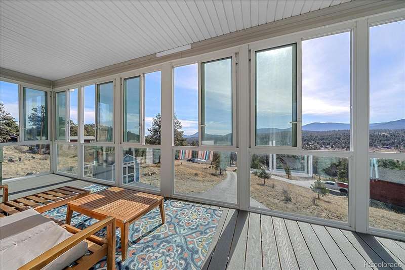 Looking for a move-in ready home in Bailey, Colorado with incredible views and usable acreage? This 4-bedroom, 3-bathroom home, built in 2017, checks every box for a modern mountain home with big windows, amazing natural light, and panoramic views of Mt. Bailey. From the moment you step inside, you're greeted by a bright, open great room with large windows that frame the mountain scenery. The living room flows into the dining area and updated kitchen, featuring newer flooring, a farmhouse sink, and modern fixtures-clean, stylish, and ready to enjoy. One of the most impressive spaces is the enclosed sunroom/deck wrapped in wall-to-wall glass windows, giving you year-round views of Mt. Bailey and the surrounding landscape. Whether you're drinking coffee, working from home, or unwinding after a long day, it's a space you can use year-round. The primary suite offers private mountain views, plus a en-suite spacious bath with dual vanities, a soaking tub, and a separate shower. Two generous secondary bedrooms and a full bath complete the main level. Downstairs, the walk-out lower level adds a large family room with a wood stove and outdoor access-perfect for cozy movie nights or entertaining. This level also includes a spacious fourth bedroom, a full bathroom, an office/flex room, and a bonus storage or hobby room. The acreage is usable and low-maintenance, with plenty of room for outdoor activities and a well-designed chicken coop setup and already in place. You're just 2 minutes from Hwy 285, giving you easy access to Denver, Conifer, and all the conveniences of mountain living-without the highway noise. The voluntary HOA includes trails, a playground, and a basketball court. If you're searching for a Bailey, Colorado home with Mt. Bailey views, big windows, flexible living spaces, and true move-in-ready condition, this property delivers. Start enjoying easy mountain living before the New Year.