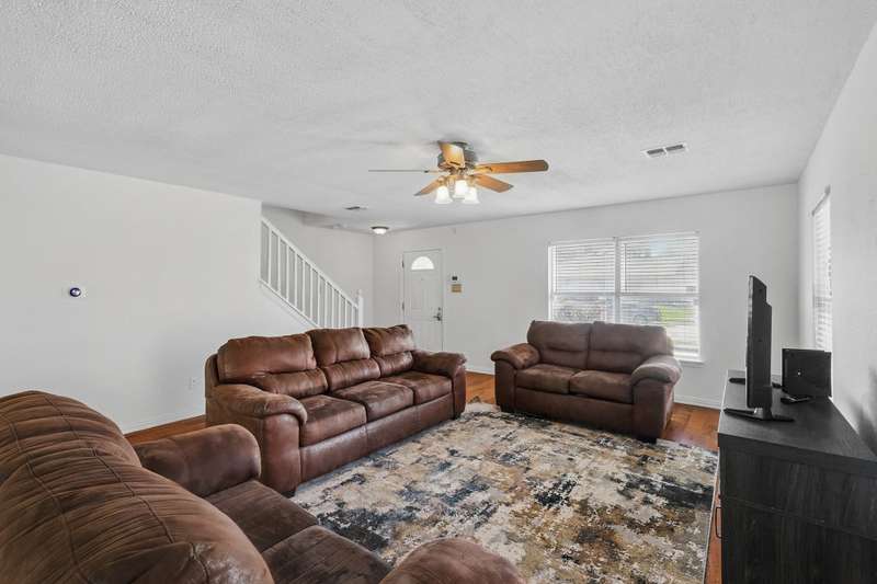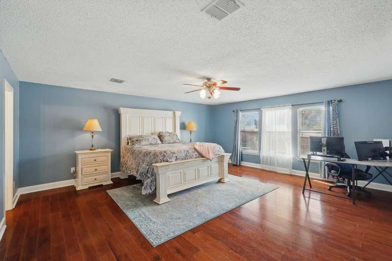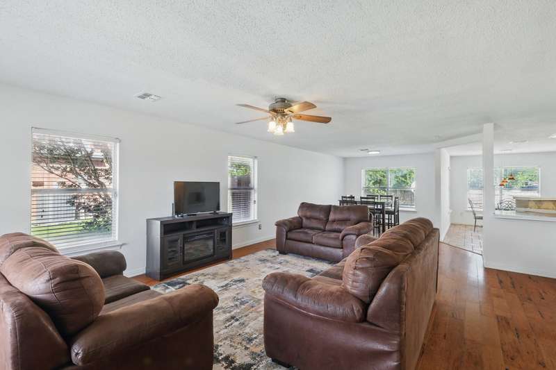 Welcome Home to 2103 Bolivar Drive. Located in Lake Port Village, this charming home welcomes you in with its inviting front porch offering plenty of room for a couple of rocking chairs to relax in. Upon entering the home, you are greeted with freshly painted Alabaster walls and beautiful manufactured hardwood floors. The grand Living Room is perfect for daily living or entertaining. The second Dining area abuts the Living room so it could also be an extension of the Living area or a play space for kids. The Kitchen boasts an eat in Dining space, a Serving Bar and a great Breakfast Bar that can easily seat 4. The Laundry room doubles as a Pantry with loads of shelving, storage for food and small appliances! Upstairs you will find new carpet and a continuation of hardwoods in the 4 bedrooms. The Primary Bedroom is generously sized with plenty of room for a Sitting area or Office. The en-suite Bathroom with Garden tub has mirroring vanities and a spacious closet. The 3 secondary bedrooms are quite roomy with oversized closets, one being almost 10x10! Don't forget the backyard ready for your Summer Fun! The newly updated Gunite Pool was resurfaced and re-tiled in Oct '24. This property has so much to offer! New roof in 2022, AC replaced 2022, water heater replaced 2024, and a whole home water softener added!*This address feeds into the coveted Timberview High School! Easy access to HW 360 and minutes to HW 287 and I20