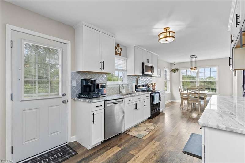 If you like privacy take a look at this beautiful Poquoson home with stunning views of water marsh area, sit on front porch and relax while enjoying beautiful private marsh views. Close to town with a relaxing private country feel. Gigantic owners' bedroom on second floor with updated bathroom. Large full bath on first floor. Bedroom on 1st floor has half bath. Office space can easily be 4th bedroom. Attractive luxury vinyl flooring throughout first floor living area for easy clean up. Carpet in all bedrooms and office. Kitchen has been completely updated to include granite counter tops. New gutters, hot water tank, and garage door opener. Garage has tons of storage. Backyard is private and has a greenhouse for all your gardening needs. Seller will include home warranty valued at $670.