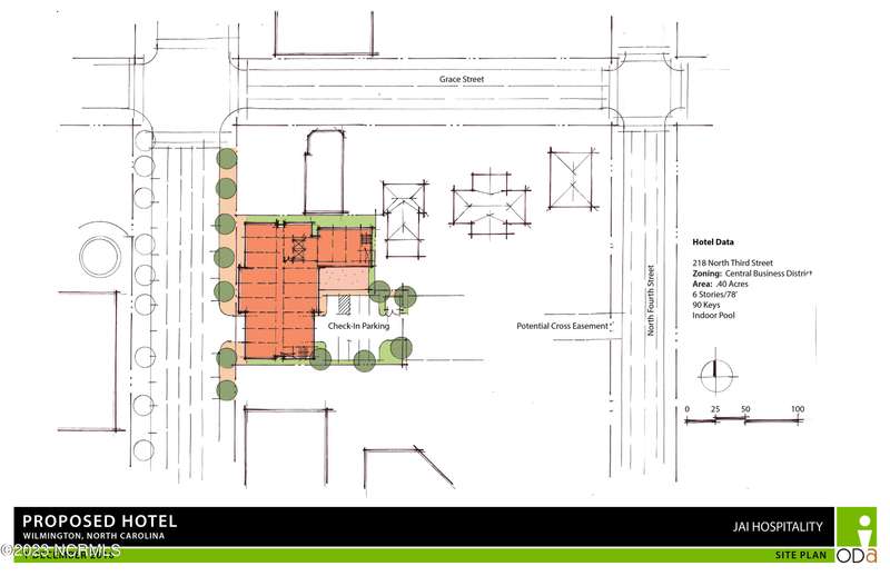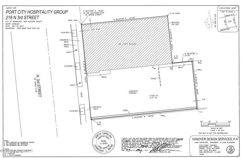 Property is located in the middle of downtown Wilmington. The land footprint is .41 acres (17,795 sq ft). The parcel has about 132.07 feet of frontage on North 3r Street. The property is location in the CBD (Central Business District). By right you can build up to 100 Feet. This property is located close to the Courthouse, City of Wilmington Building, hotels, banks, Office Buildings, Convention Center and many local business and residential areas. There is a one Story 8,141 sq. ft. building onsite. Per the City of Wilmington, this building is not a contributing structure so it can be utilized or removed/demo for a complete re-development of this prime location in Wilmington's Central Business District.