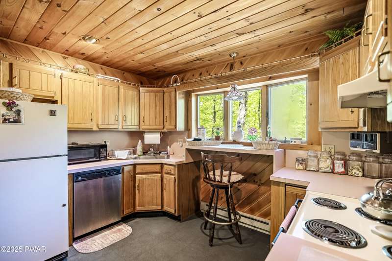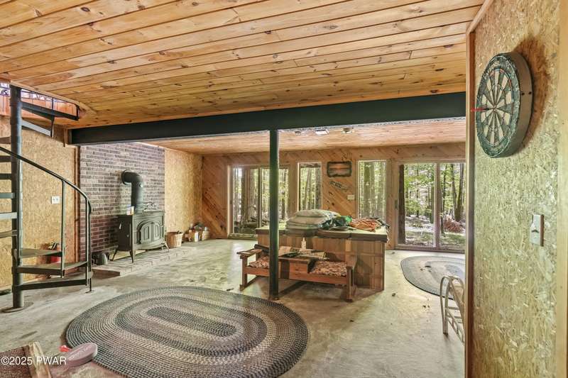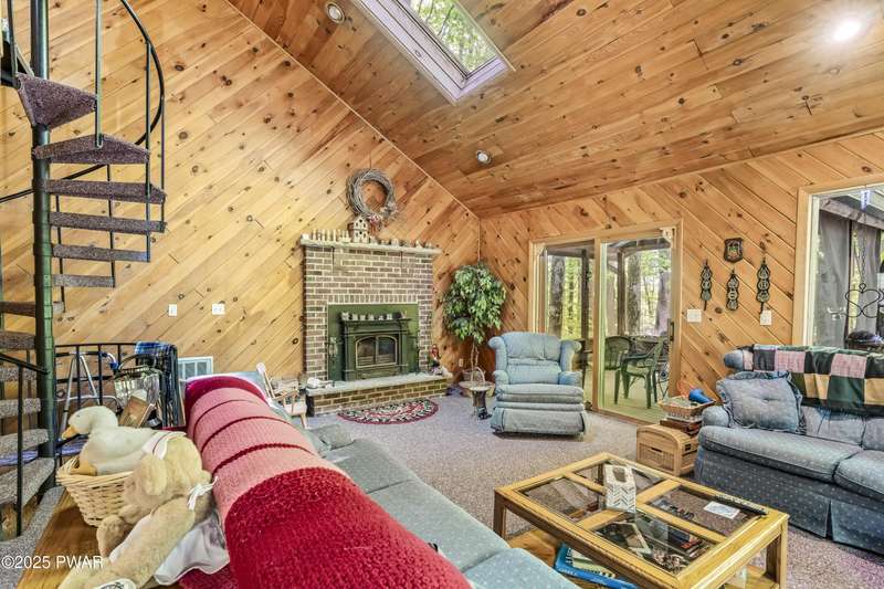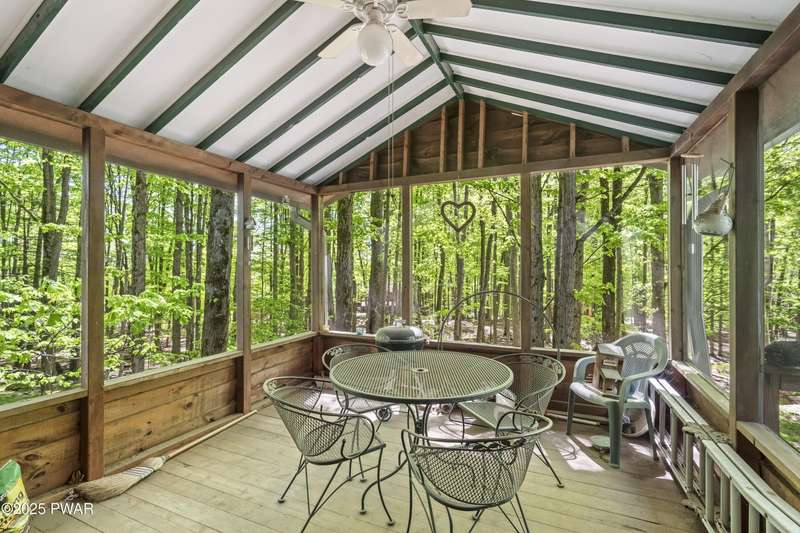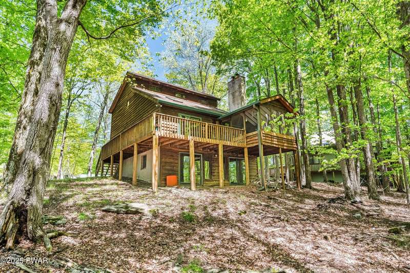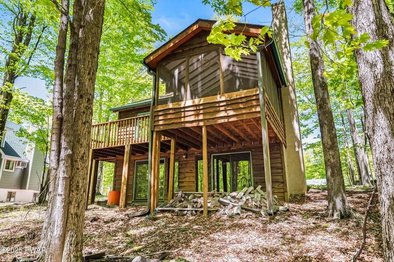 Welcome to 10 Sandy Ct, Lake Ariel, PA -- a peaceful and private 3-bedroom, 2.5-bath home tucked away on a quiet cul-de-sac in the highly desirable, gated community of The Hideout. Surrounded by natural beauty, this charming retreat offers a perfect blend of warmth, space, and functionality. Step inside to find vaulted ceilings, wood-accented walls and ceilings, and an abundance of natural light pouring in from oversized windows. The living room features a striking brick fireplace, perfect for cozy nights, while the open-concept dining and kitchen area offers generous counter space, plenty of cabinets, and a breakfast bar overlooking the wooded backyard. The home features three comfortable bedrooms, including a spacious primary suite, along with two full bathrooms and a convenient half bath. A screened-in porch provides a relaxing, peaceful setting to enjoy your morning coffee or unwind in the evenings. The lower level includes an indoor hot tub and lounge area with walk-out access--an ideal bonus space for entertaining or year-round enjoyment. Located in The Hideout, a four-season community offering exceptional amenities like two lakes with beaches, multiple swimming pools, a golf course, tennis and basketball courts, a fitness center, clubhouse, mini golf, a ski hill, 24-hour gated security, and more. Whether you're looking for a full-time residence, a vacation home, or a short-term rental opportunity, this home checks every box for comfort, privacy, and access to everything the Poconos has to offer.