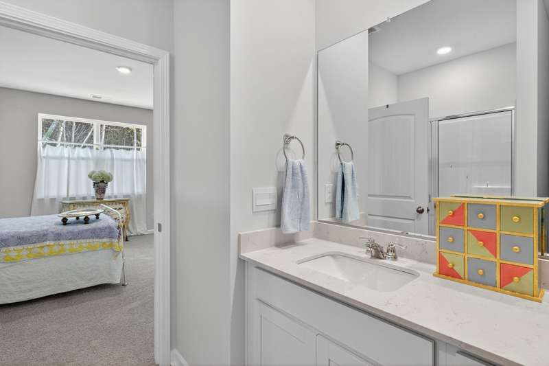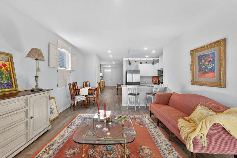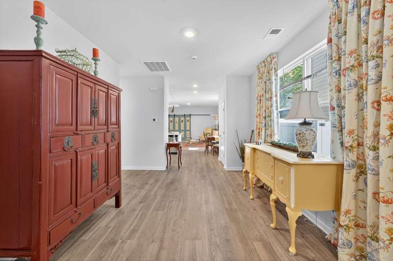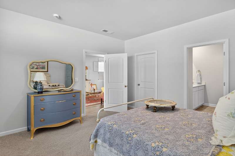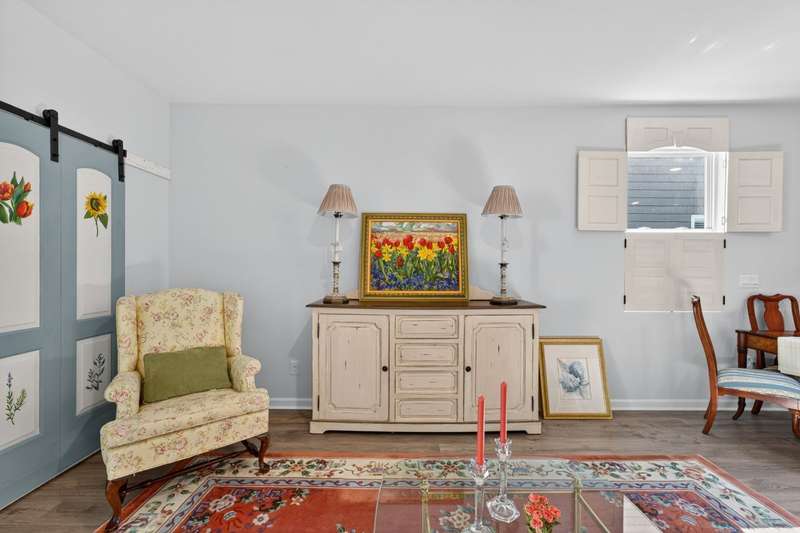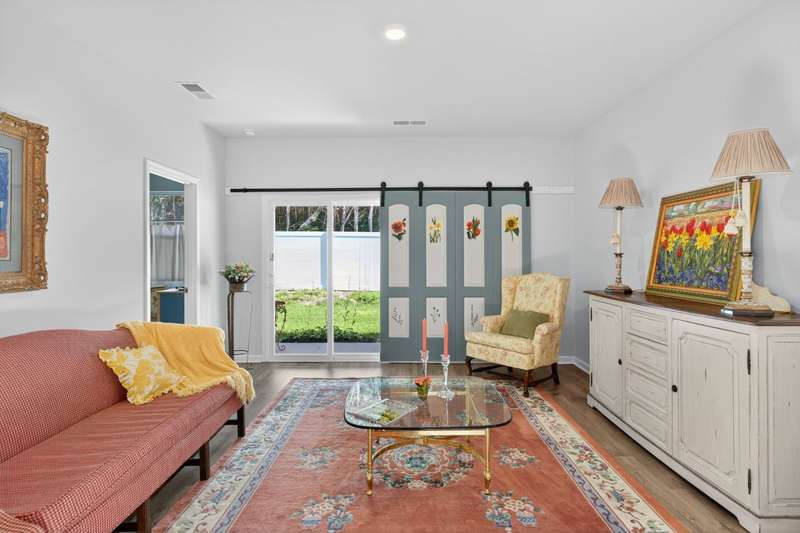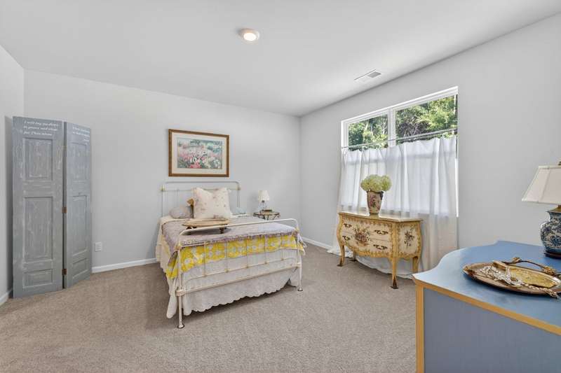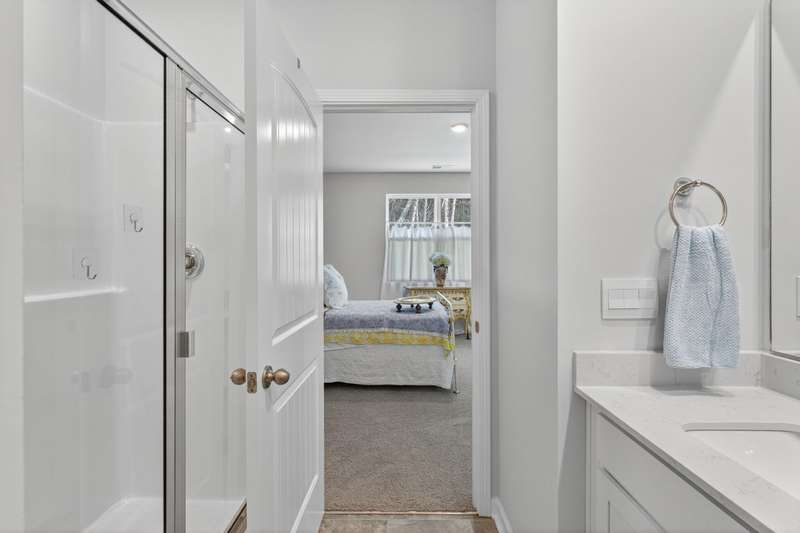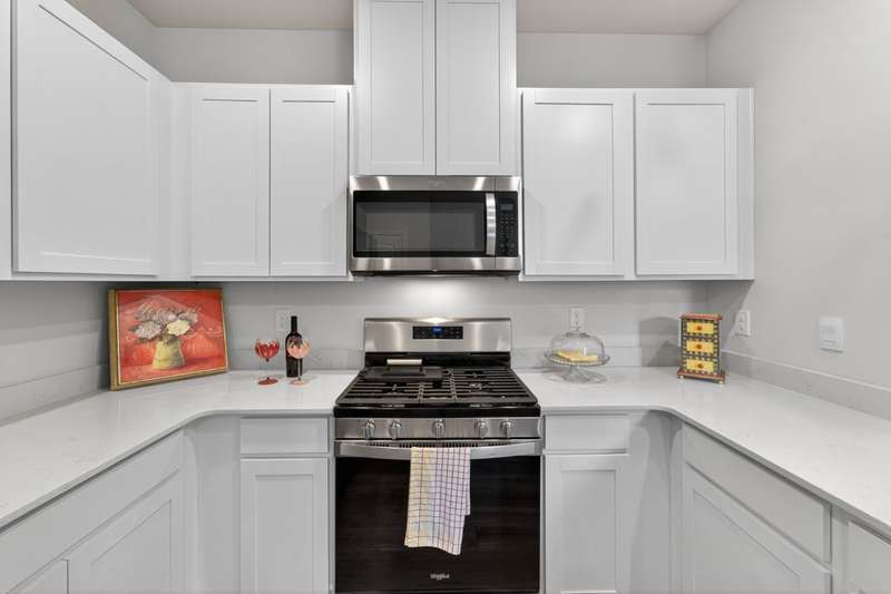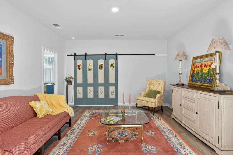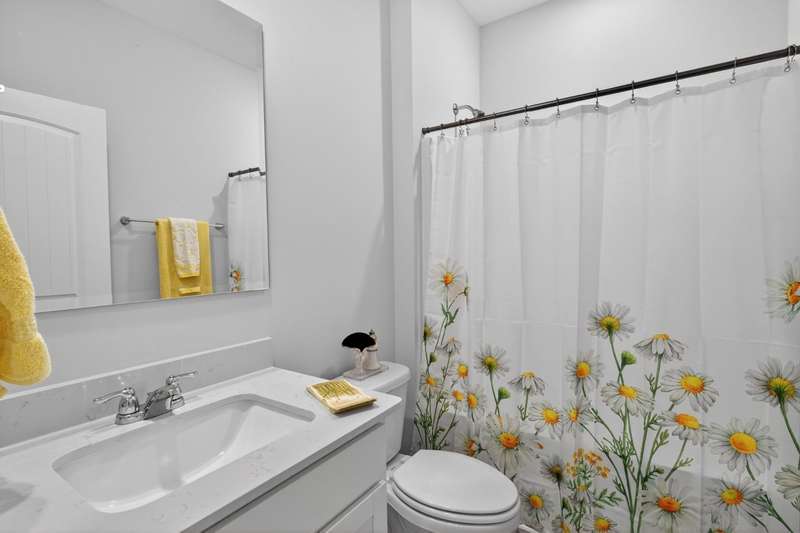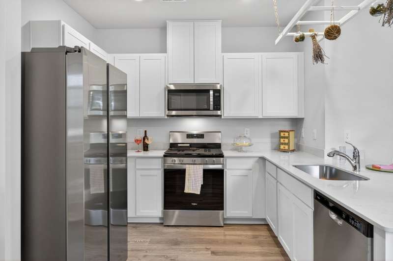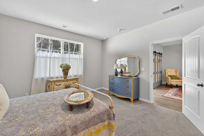 Tucked against a peaceful treeline, this like-new, single-level cottage feels instantly welcoming. Step inside to find a bright, open layout with quartz countertops, stainless steel appliances, and easy-care LVP flooring. Soft recessed lighting and 9' ceilings create an inviting feel, while a decorative sliding door leads you to the covered back patio-just right for morning coffee or evening conversations. A dedicated laundry room adds convenience, and the vinyl-fenced backyard offers privacy and a perfect space to unwind. From its charming shaker shingle accents to its thoughtful finishes, this home is ready for you to start your next chapter.