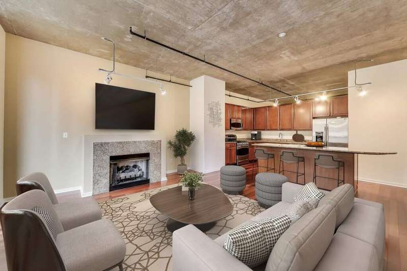 The Library Tower Condo Association; where city living meets modern comfort in the heart of Printers Row and the South Loop. This spacious one-bedroom, one-bathroom condo offers 1,080 square feet of thoughtfully designed living space with an open floor plan and contemporary concrete loft style. The home features hardwood floors, a gas fireplace, and high concrete ceilings that create an airy and modern feel. The large kitchen is outfitted with stainless steel appliances, a generous island perfect for entertaining, and plenty of storage. The bathroom includes a Jacuzzi tub for relaxation, while the convenience of an in-unit washer and dryer makes everyday living easy. A private balcony extends your living space outdoors, and garage parking is included. Amenities include a 24-hour door person, on-site manager and engineer, fitness center, sun deck with grills, party room, business center, theater room, and a secure package room. The location is ideal, surrounded by the best of Chicago's South Loop and Printers Row. Step outside and you are moments from charming cafes, award-winning restaurants, Grant Park, the lakefront, the Harold Washington Library, and excellent public transportation options. This home combines space, style, and convenience in one of the city's most walkable neighborhoods, offering a unique opportunity to enjoy the best of downtown living.