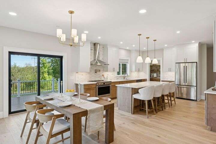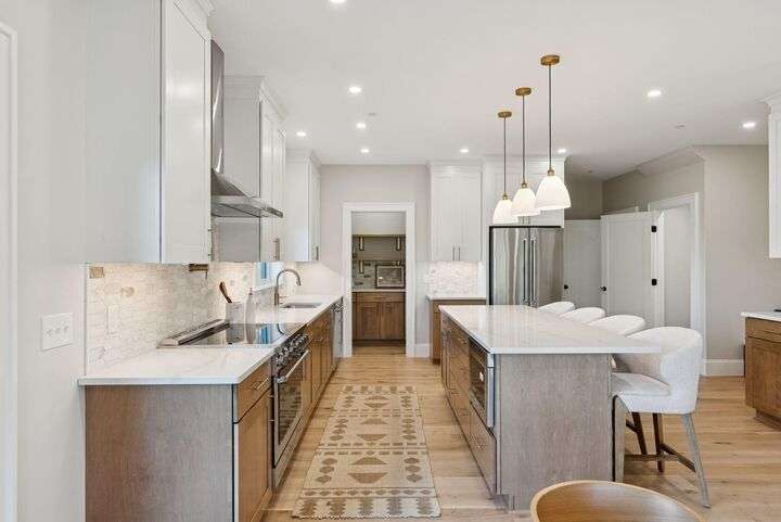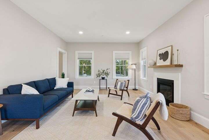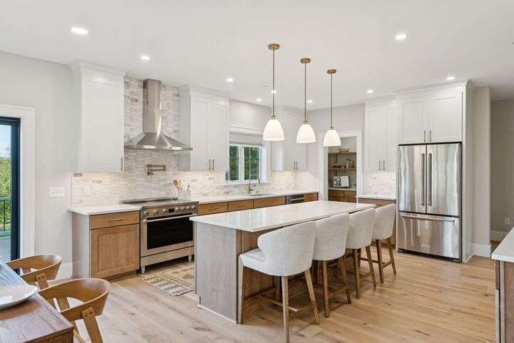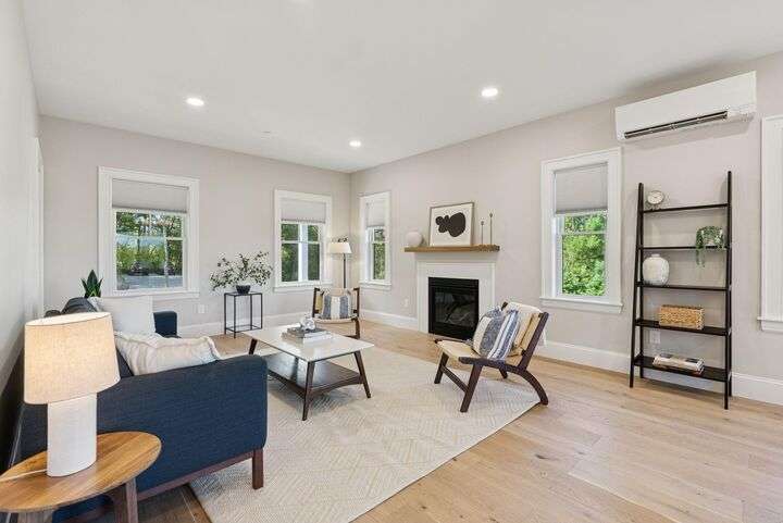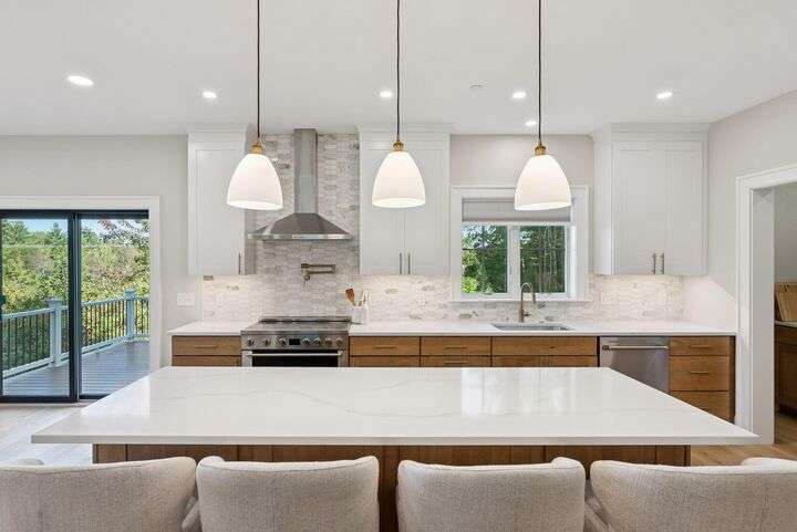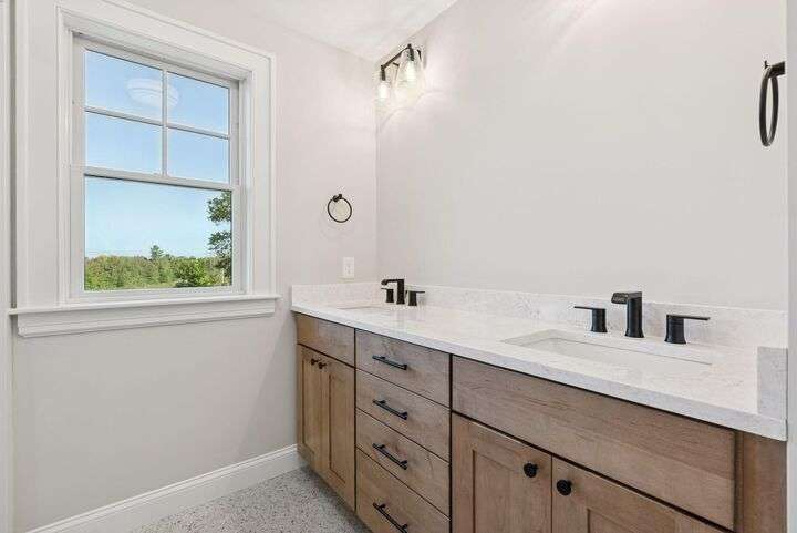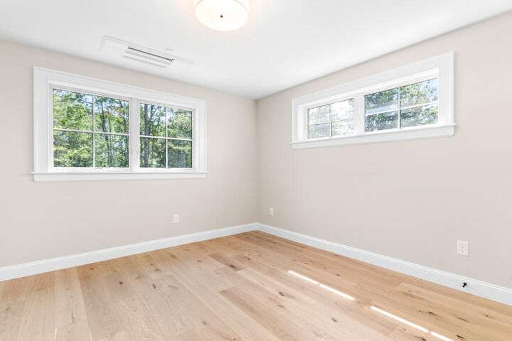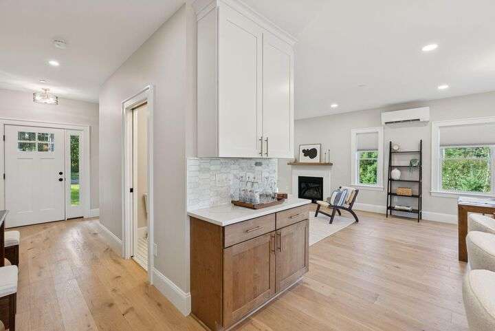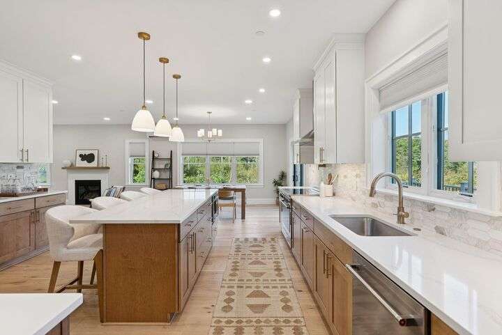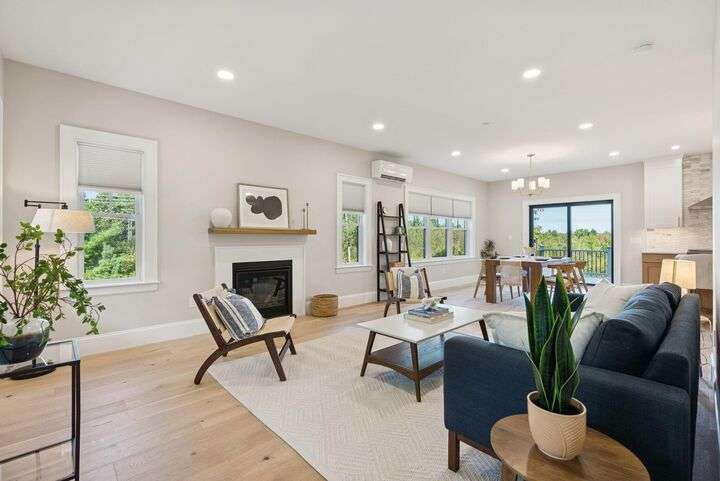 Style, Space & Serenity in North Yarmouth. Set on over an acre at the end of a quiet, established road, 27 Carriage Hill is a newly-built home that delivers modern comfort, timeless finishes, and room to grow—all in a peaceful wooded setting. With 4 bedrooms, including a serene primary suite with a custom walk-in closet and spa-like bath featuring a double vanity, rainfall shower, and beautiful tilework, every detail has been thoughtfully considered. Three additional bedrooms—one with a built-in desk—offer flexible space for guests, hobbies, or working from home. The heart of the home is a stunning open-concept kitchen with an 8-foot quartz island, stainless KitchenAid appliances, a walk-in pantry with open shelving, and a custom coffee or cocktail bar. It opens to a dining area with sliding doors that lead to a composite back deck—perfect for indoor-outdoor entertaining. A cozy gas fireplace anchors the adjacent living room, and wide plank white oak floors run throughout the home. Upstairs, a large laundry room with built-in shelving makes everyday tasks easier, and downstairs, a fully finished basement offers extra space for a playroom, gym, or media area. Built with Andersen windows and Mitsubishi heat pumps for efficiency and durability, this home is as solid as it is stylish. Outside, the large backyard connects to a network of snowmobile and walking trails that link to nearby conservation land. Just minutes from schools and local amenities, this is North Yarmouth living at its finest.
