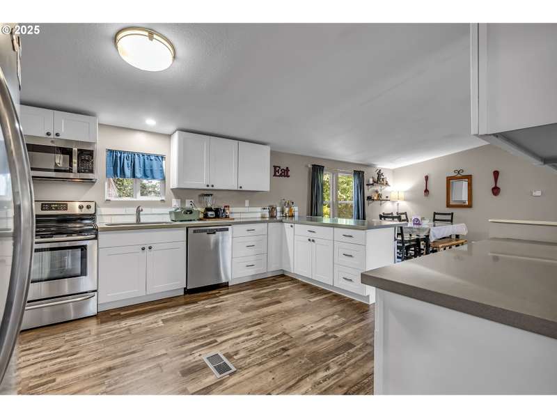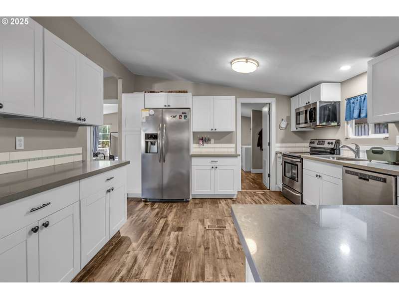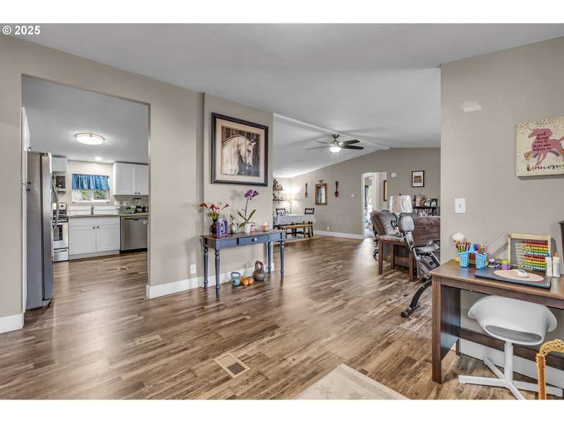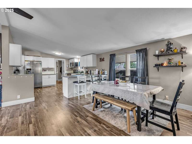 Welcome to this beautifully maintained 3-bedroom, 2-bathroom manufactured home located in the desirable County Village Estates—an all ages mobile home park nestled in the heart of Oregon City. This home offers the perfect blend of space, comfort, and convenience. Step inside to an updated kitchen that shines with modern finishes and flows seamlessly into a large open floor plan, connecting the dining and living areas—ideal for entertaining or keeping an eye on the family while you cook. Just off the main living space, you’ll find a versatile bonus area, perfect as a playroom, home office, or creative studio. The thoughtful split layout places the guest bedrooms and bathroom on one side, giving privacy and separation from the spacious primary suite. The primary bedroom features a walk-in closet and an attached full en suite bath, creating your own private retreat. Both bathrooms are generously sized and well-appointed for comfort and functionality. Enjoy outdoor living in the expansive backyard, perfect for summer barbecues, gardening, or simply relaxing. The space offers endless possibilities for outdoor activities or personalization. Located close to local schools, shopping, restaurants, and just a short drive to downtown Oregon City, this home offers the ideal mix of suburban convenience and peaceful community living. Don’t miss your opportunity to own this move-in ready gem in a welcoming, family-friendly neighborhood! Space rent is $844/month. Includes Sewer & cable.