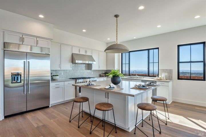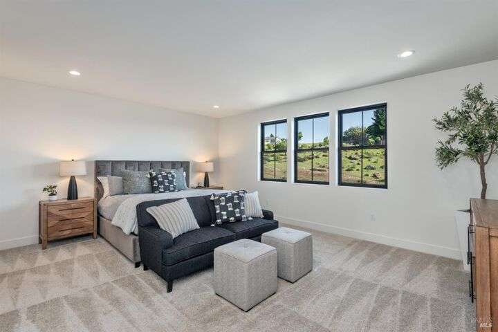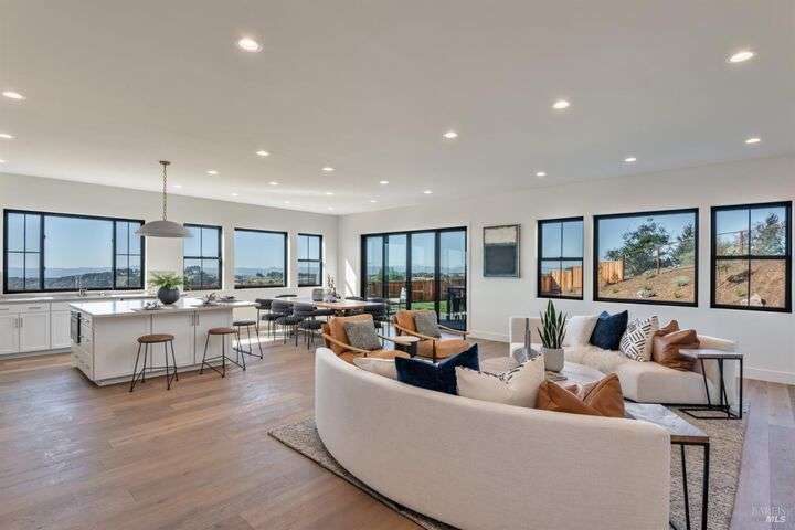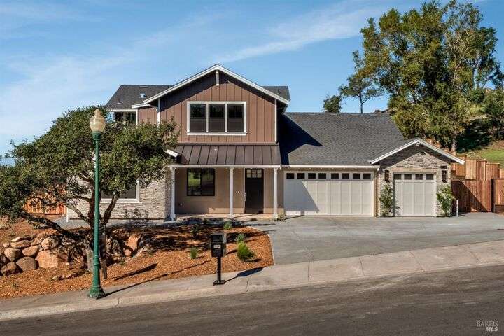Modern luxury with panoramic views in the heart of Fountaingrove. This new construction 4BD, 5BA + Den residence offers over 4,300 SQFT of thoughtfully designed living space on more than half an acre, showcasing expansive westerly views of mountains, valleys, and shimmering city lights. A majestic oak tree welcomes you at the front, while adjacent open space enhances the home's sense of privacy and connection to nature. Inside, an expansive great room is filled with natural light and sweeping views. The open-concept layout seamlessly integrates the kitchen, dining, and family areas, perfect for relaxed gatherings or elegant entertaining. French sliding doors lead to a large, flat backyard, ideal for a pool, outdoor kitchen, garden retreat and more. The main-level primary suite offers direct outdoor access, creating a private sanctuary. Upstairs, a versatile loft and private en-suite bedroom provide flexible space for guests or multi-generational living. Set in the hills of Fountaingrove, this home offers more than exceptional design, it delivers an elevated lifestyle. With nearby access to the Fountaingrove Golf & Athletic Club, hiking trails, top-rated schools, and everyday amenities, this residence embodies a rare blend of sophistication, serenity, and convenience.