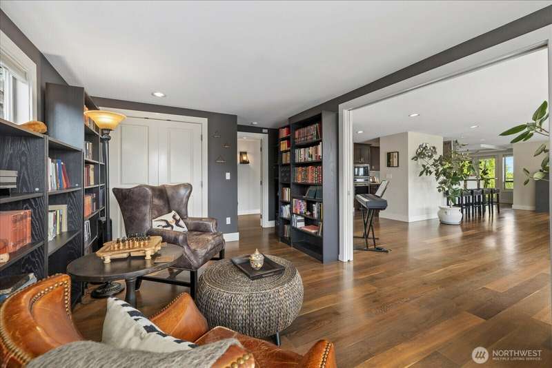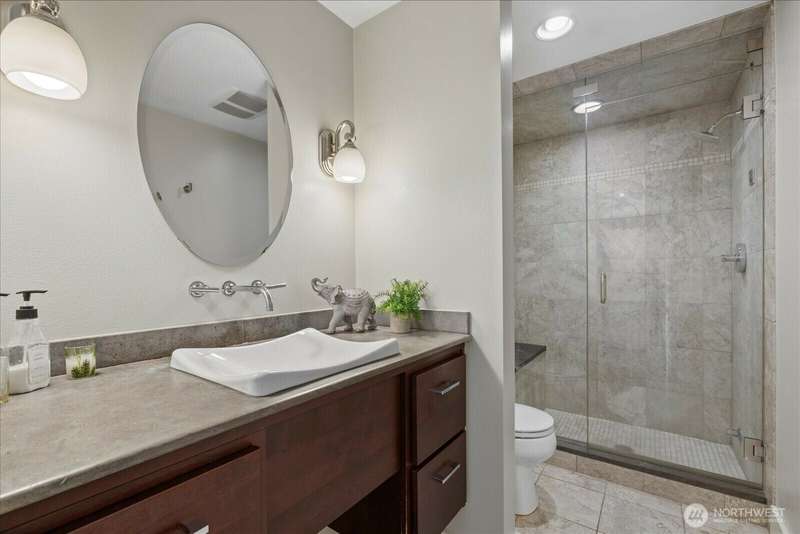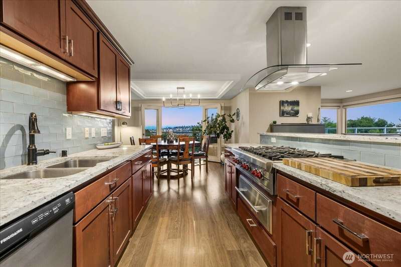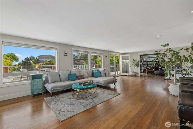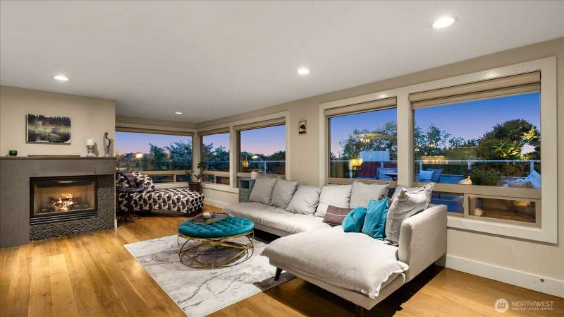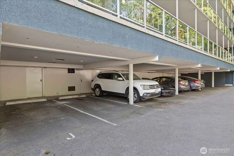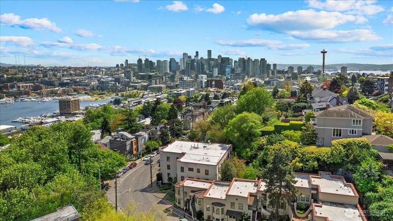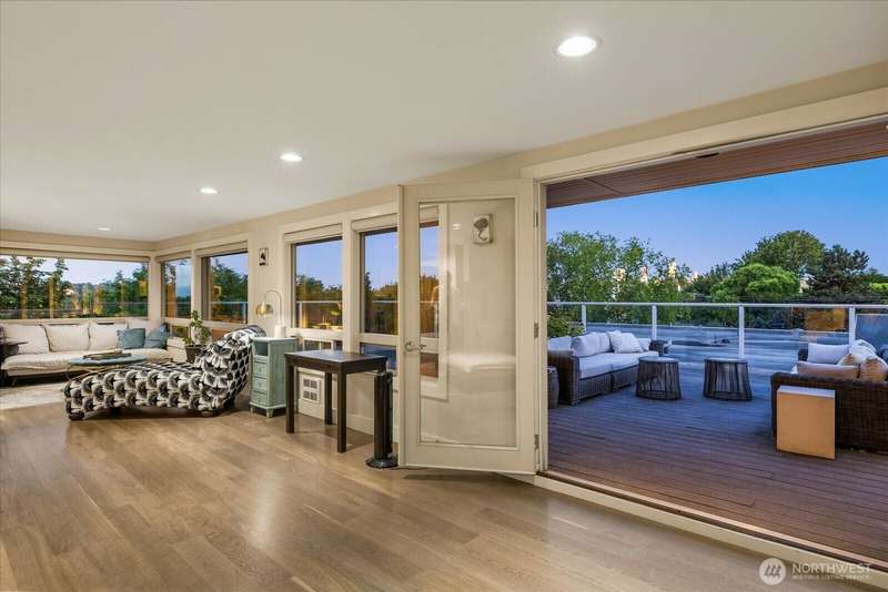 PENTHOUSE PERFECTION- Top-floor stunning SE- Lush tree landscape w/ partial Lake Union+ City & Mountain views with rare 1200 sqft private deck wrap around deck. Brilliant layout, near 1800sft home with additional apartment for guests on lower level. Enjoy this classic mid century modern design. Open concept floor plan, unmatched flow seamlessly connecting spacious living, dining, and kitchen areas with floor-to-ceiling glass for abundant natural light- ideal indoor-outdoor flow an entertainers dream. Includes 2 secure parking spaces + a separate lower-level guest suite with bathroom—great for guests, office, Art studiol. Exceptional location near Lake Union in a quiet, boutique building. A top floor penthouse with unmatched flexibility!