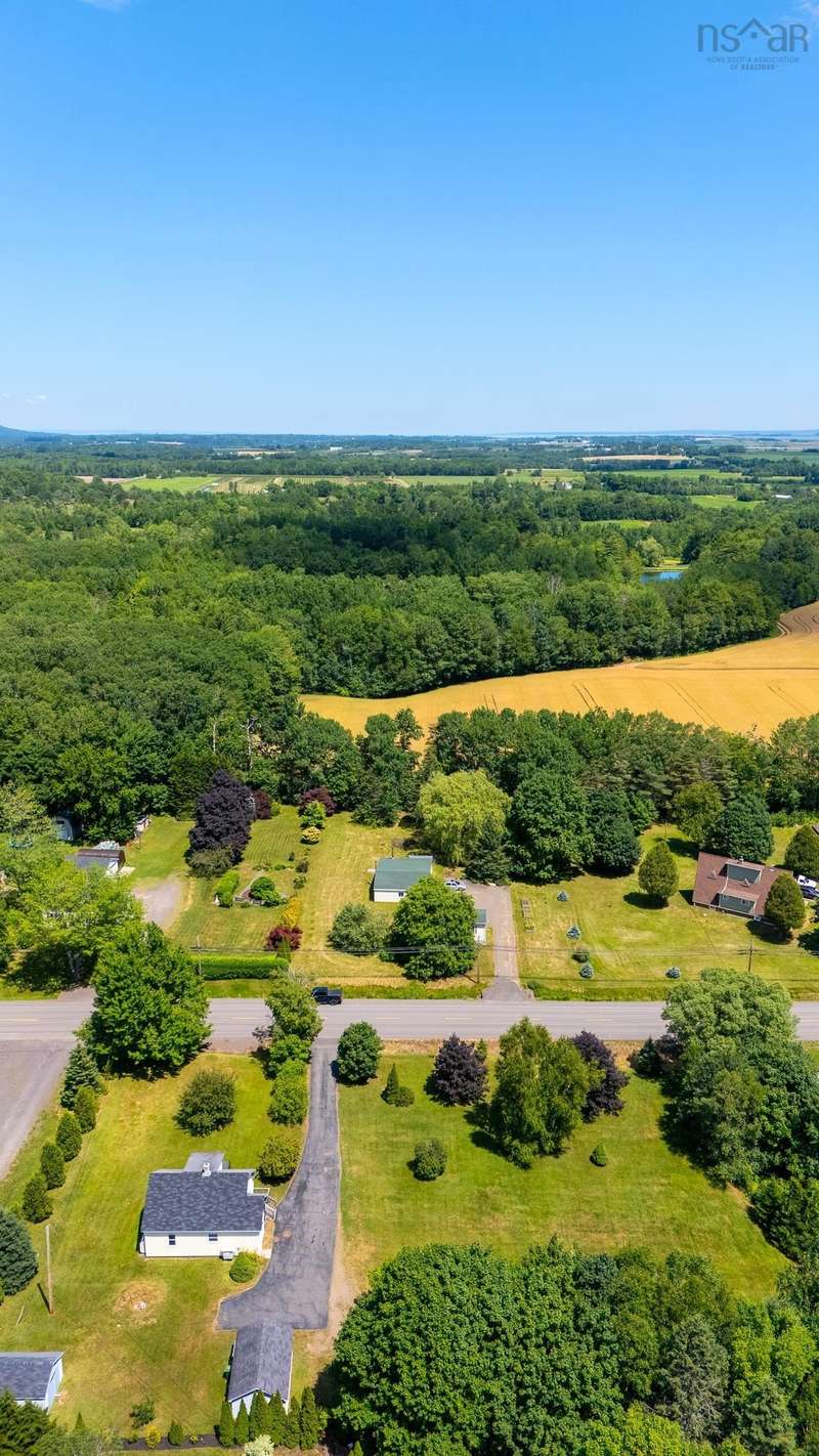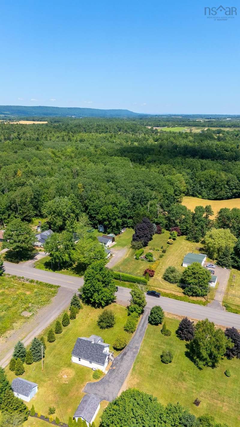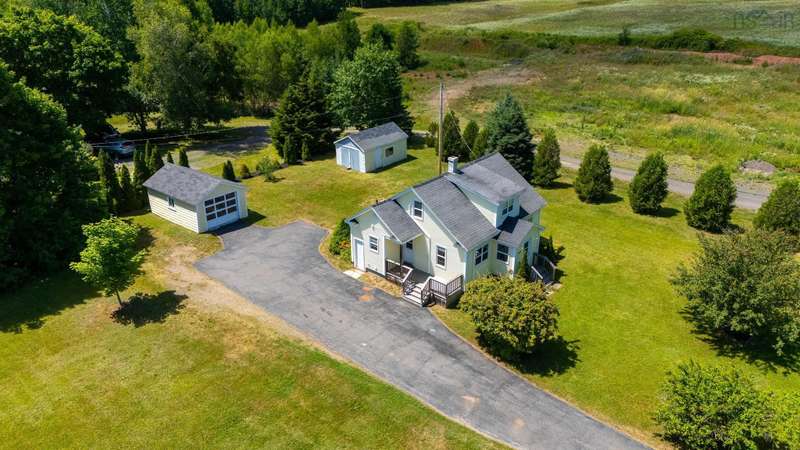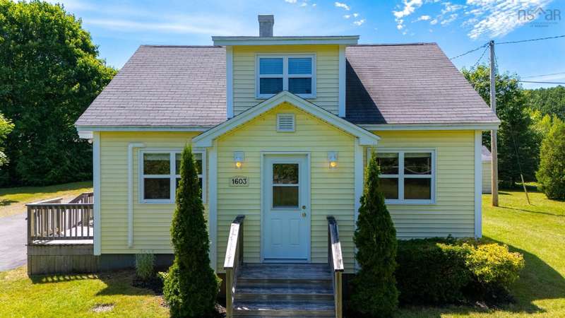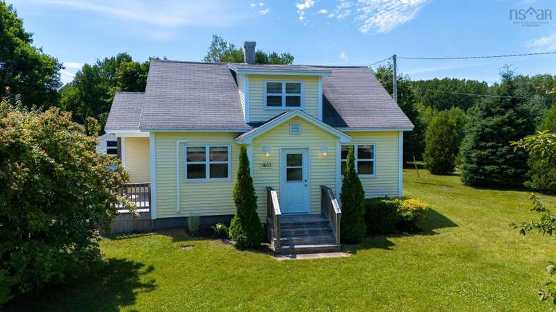 Welcome to 1603 Highway 359 - a charming and well-maintained home tucked away on a beautiful 1-acre lot in a desirable community just minutes from Kentville and New Minas. This 2-bedroom, 1-bathroom home offers a bright and inviting layout with a generous kitchen, open-concept living and dining area, and a versatile office/den on the main level that could easily serve as a third bedroom. You'll also find a welcoming front foyer and convenient 3-piece bathroom on this level. Wood floors run throughout most of the home, adding warmth and timeless character. Upstairs features two cozy bedrooms and an adorable landing nook—perfect for a quiet reading space or a sunny plant corner. Thoughtful upgrades include three new heat pumps (one on each level), newer windows, and roof. The house also features a long-paved driveway with extra parking at the back. The basement also offers walkout access to the backyard, adding flexibility for storage. Outdoors, enjoy the peace and privacy offered by mature hemlocks, red maples, and birch trees surrounding the property. The large, open yard is ideal for kids, pets, and summer gatherings. A single detached garage and additional large shed provide plenty of storage. This home radiates character with its preserved 1950s charm and has been lovingly cared for by the same family for generations. Located near parks, playgrounds, golf courses, and the scenic beauty of Halls Harbour and The Look-Off, this sweet spot is the perfect blend of country peace and convenient access.