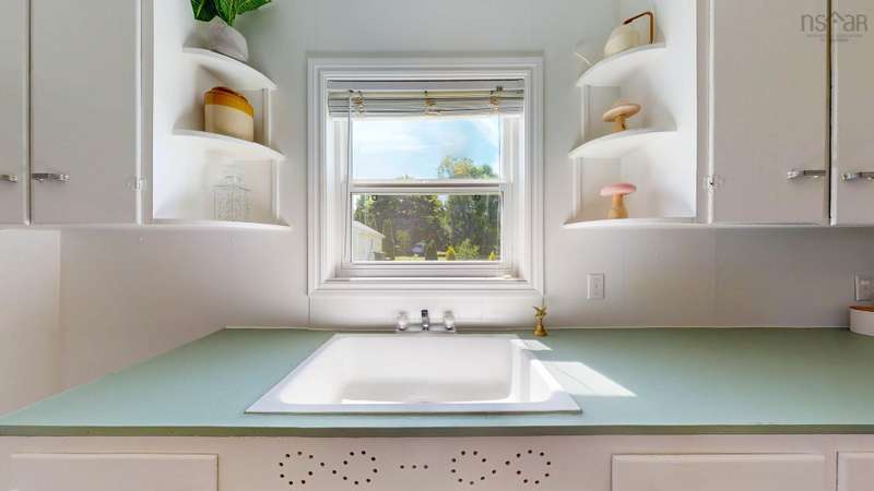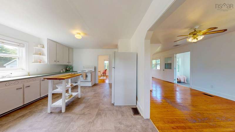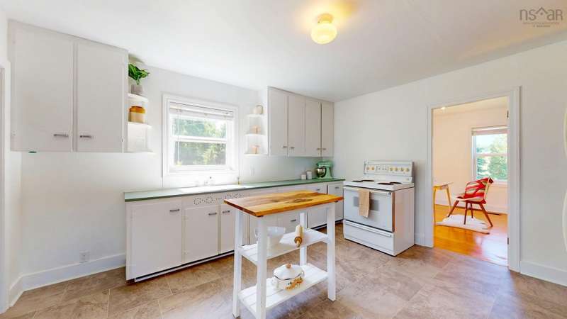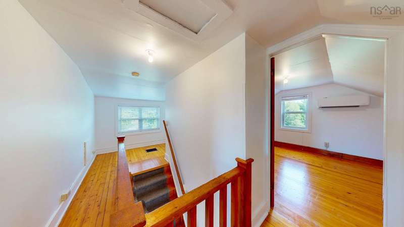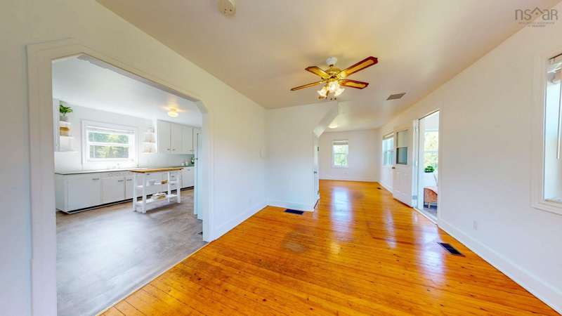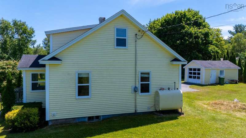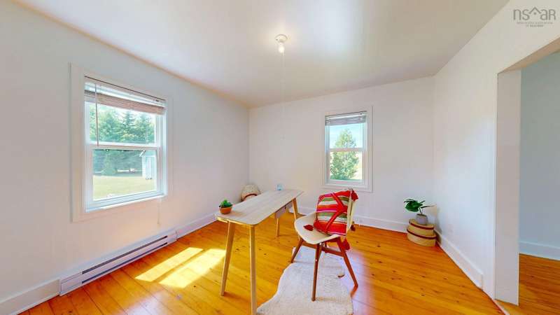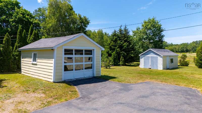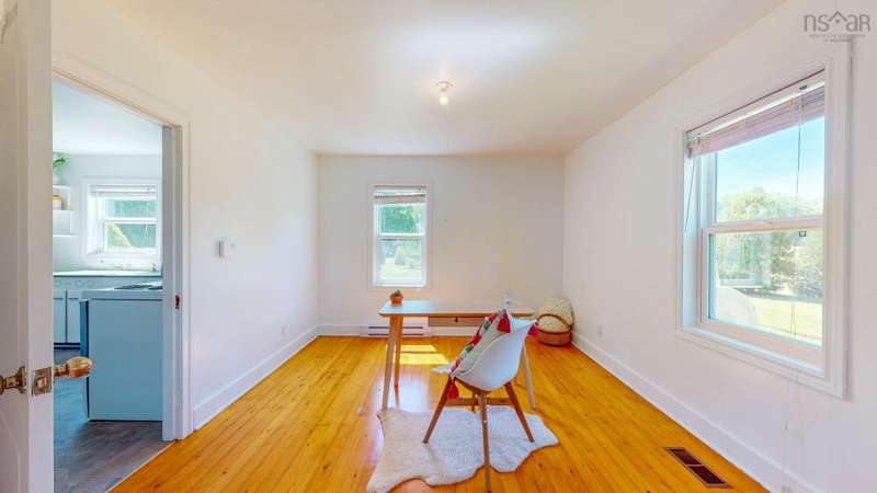 Welcome to 1603 Highway 359 - a charming and well-maintained home tucked away on a beautiful 1-acre lot in a desirable community just minutes from Kentville and New Minas. This 2-bedroom, 1-bathroom home offers a bright and inviting layout with a generous kitchen, open-concept living and dining area, and a versatile office/den on the main level that could easily serve as a third bedroom. You'll also find a welcoming front foyer and convenient 3-piece bathroom on this level. Wood floors run throughout most of the home, adding warmth and timeless character. Upstairs features two cozy bedrooms and an adorable landing nook—perfect for a quiet reading space or a sunny plant corner. Thoughtful upgrades include three new heat pumps (one on each level), newer windows, and roof. The house also features a long-paved driveway with extra parking at the back. The basement also offers walkout access to the backyard, adding flexibility for storage. Outdoors, enjoy the peace and privacy offered by mature hemlocks, red maples, and birch trees surrounding the property. The large, open yard is ideal for kids, pets, and summer gatherings. A single detached garage and additional large shed provide plenty of storage. This home radiates character with its preserved 1950s charm and has been lovingly cared for by the same family for generations. Located near parks, playgrounds, golf courses, and the scenic beauty of Halls Harbour and The Look-Off, this sweet spot is the perfect blend of country peace and convenient access.