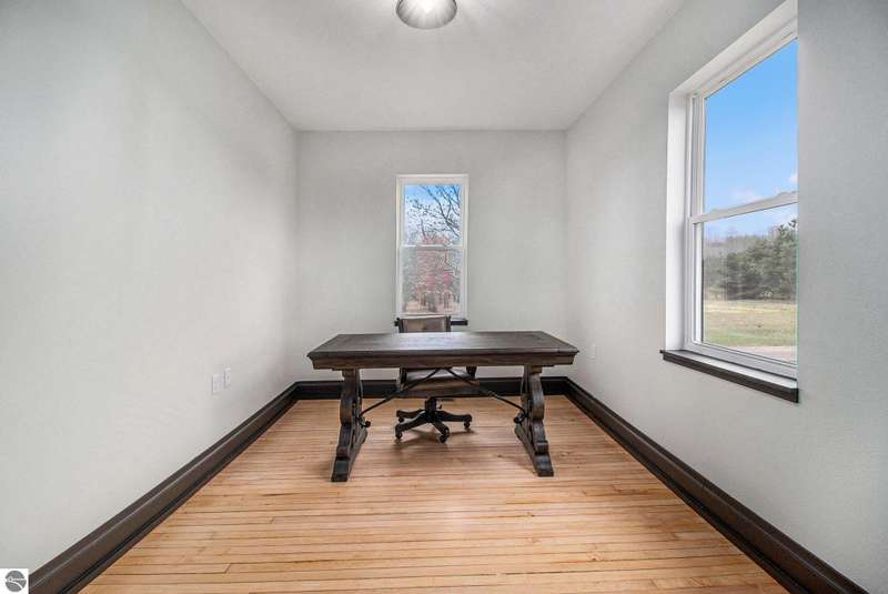 Classic Country Farmhouse on 60 Acres of Rolling Land. Welcome to this beautifully renewed farmhouse, where timeless character and modern comfort come together in perfect balance. Set on 60 acres of gently rolling countryside, this property offers a peaceful mix of mature hardwoods, open pastures, and a spring-fed pond--ideal for those who value open space, natural beauty, and the rewards of country living. Inside, the home's warm and inviting feel begins with the original hardwood floors, carefully restored to preserve their enduring charm. The main level features spacious living and dining areas, high ceilings, and large windows that fill the home with soft, natural light. The thoughtfully redesigned kitchen showcases custom cabinetry and quartz countertops, offering a practical yet elegant workspace for daily living. A main-floor office provides flexibility for family or business use. Upstairs, three comfortable bedrooms and a versatile bonus area create space for restful nights, creative projects, or family gatherings. A cozy lounge adjacent to the largest bedroom offers a quiet corner to unwind. Outside, a classic two-story barn stands ready for animals, storage, or workshops. Recently updated with a new roof, improved lighting, and reinforced concrete walls, it's built to last and ready for a variety of uses. The land's open fields, tree lines, and water source make it well-suited for gardens, livestock, or simply enjoying a peaceful rural lifestyle surrounded by nature. This remarkable property offers a chance to live close to the land while enjoying the comfort of a carefully restored farmhouse--a place where tradition, simplicity, and modern living exist in harmony.