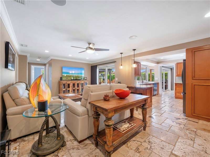 Come home to this stunning Southern exposure 4 bedroom, 3 bathroom single story home located in the highly sought-after Town & River boating community. This home features a brand NEW aluminum metal roof. Boasting an incredible backyard oasis, this property is perfect for those who love to entertain or simply enjoy the Florida lifestyle. The pool area is perfect for relaxing with family and friends, while the custom pergola lounge area provides a shaded retreat. The captains dock with 2 boat lifts, 20k and 10k pounds, both with canopies, makes boating and fishing easily accessible. Inside, the home features custom tumbled marble floors, hurricane impact sliding glass doors and windows, stainless steel appliances, and a gourmet kitchen with custom wood cabinets, and granite counter tops. This home also features a whole home solar powered system by Sunnova Home Solar Service. Don't miss out on the opportunity to make this exceptional property your forever home.