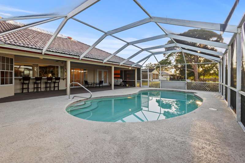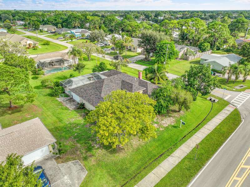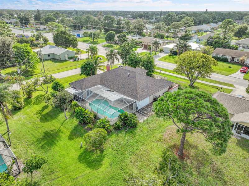 NEW ROOF 2025! This 3 bedroom 2 bathroom 2 car garage CBS pool home is move in ready! Sitting on .32 acre corner lot, ample parking, and space for toys. Fruit Trees. Smart home features and ADT system. Vinyl floors installed in the main living areas and bedrooms in 2022. The kitchen includes SS appliances, real wood cabinets, granite countertops, a large pantry & foyer, and a kitchen island. Breakfast nook off the side of the kitchen.Over 1,500 sq ft of outdoor living space with four access points, a granite bar, covered patio, and large pool. Primary suite pool access, a jacuzzi tub & shower, and a large walk-in closet. Home Includes an outdoor dog pen. Conveniently located near the Turnpike, Crosstown Parkway, St. Lucie West, and I-95.