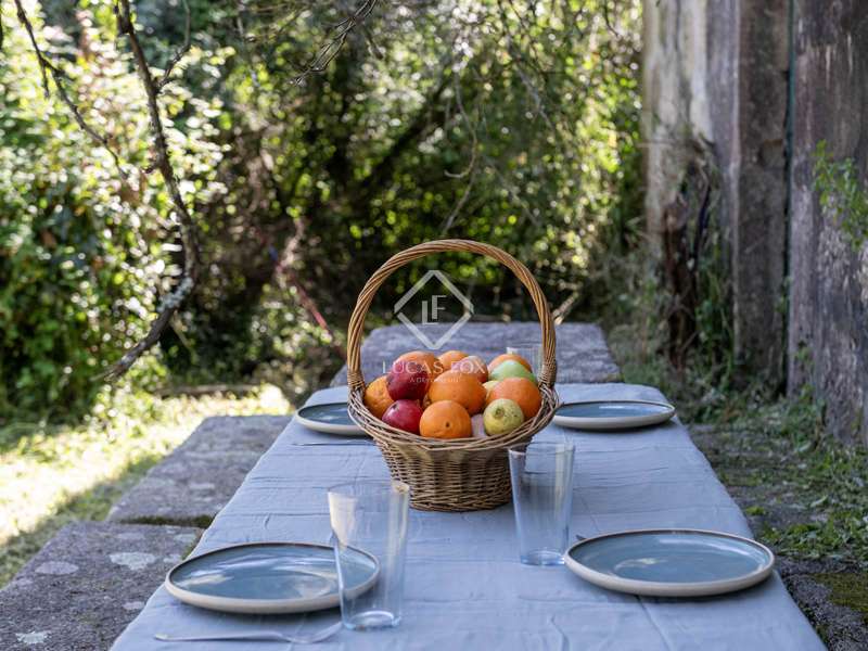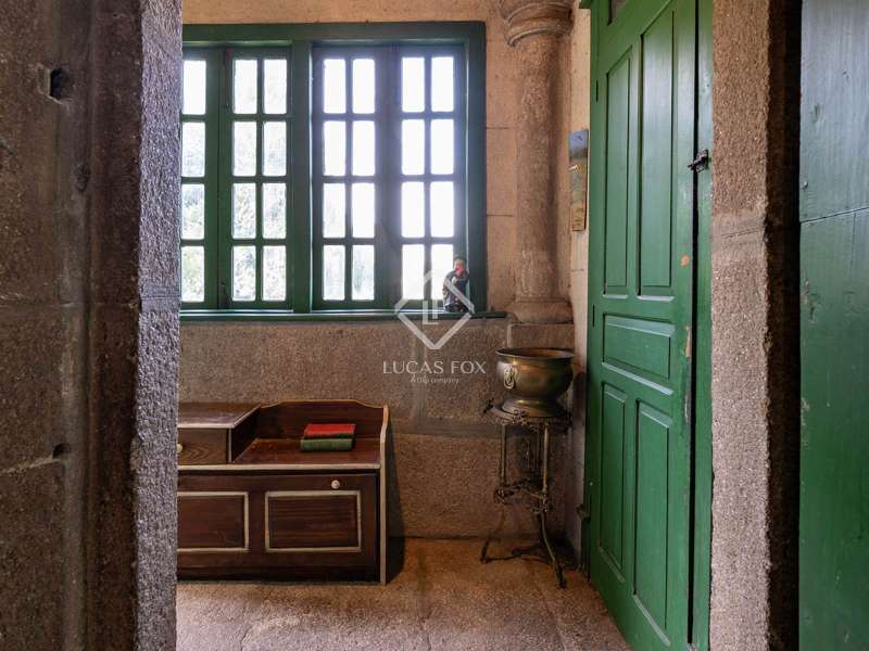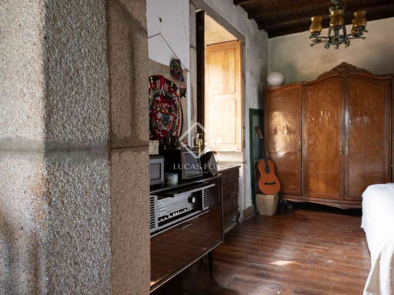 This beautiful stone country house was built in 1758, and a minor update was made in 1983. It sits on a large plot measuring 1,3 hectares and has great potential. The property is located just outside Tui and has nice views, including its majestic cathedral and the undulating landscape across the river on the Portuguese side. A high perimeter stone wall surrounds part of the property, with two heavy wooden doors giving access to it. The property needs to be fully renovated. It has 269 m² of built surface, including a cistern next to the water well that is currently used as a swimming pool. The water source belonging to the property is abundant and used for daily consumption and irrigation. The main stone house has two levels with a staircase ending in a landing right by the entrance. We access the house and enter the kitchen space, which connects with a large living and dining room area. The ceilings are coffered with wood, giving the space a warm touch. There are three bedrooms and one bathroom in the house. A balcony with its original ironworks allows for great views of the town of Tui. The lower part of the house was used as a cellar and storage area and has excellent potential as a day area while keeping the upper part of the home as the night area. This property is ideal for clients looking for a historical restoration project and has enormous potential as a venue for functions and events. Do not hesitate to contact us for further details.