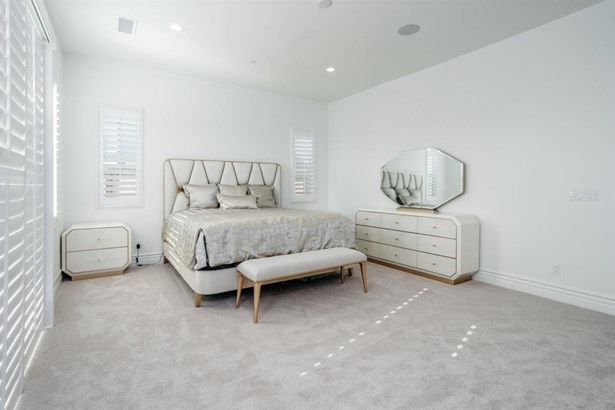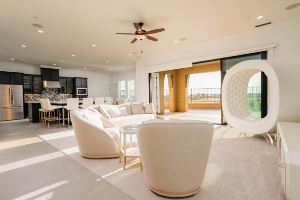 Head into a world of breathtaking views and exceptional luxury in this never-lived-in home located in the prestigious Tesoro Viejo community. This McCaffrey Homes Makenna Plan sits on a premium 9,147 sqft lot & features an open floor plan with soaring 10' ceilings & 8' doors, designed to make the most of its stunning surroundings.The living room welcomes you with a wall of stackable sliding glass doors, opening to expansive views beyond the covered patio and iron fence. A formal dining area and additional eating space also capture the scenery, offering the perfect setting for meals with a view, complemented by shutters for privacy. The chef's kitchen boasts a 10x6 foot island/breakfast bar, Thermador appliances, elegant glass cabinetry, & surround sound throughout.A versatile Multi-Gen suite with a kitchenette offers privacy and convenience, while the primary suite serves as a true retreat, complete with a spa-like bath, walk-in shower, soaking tub, double vanity, & a generous walk-in closet - each with peaceful views of pastures. Crown molding, recessed lighting, & surround sound elevate the home's charm.