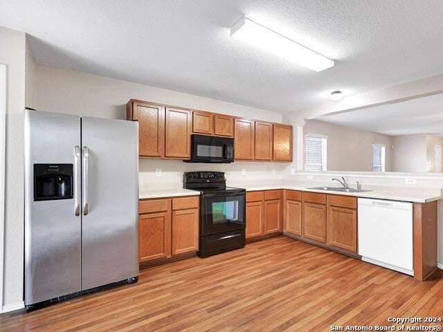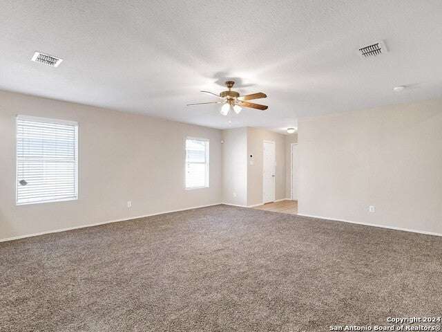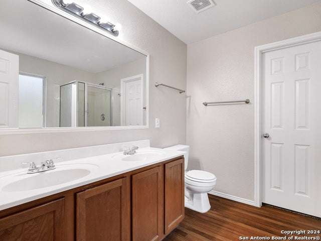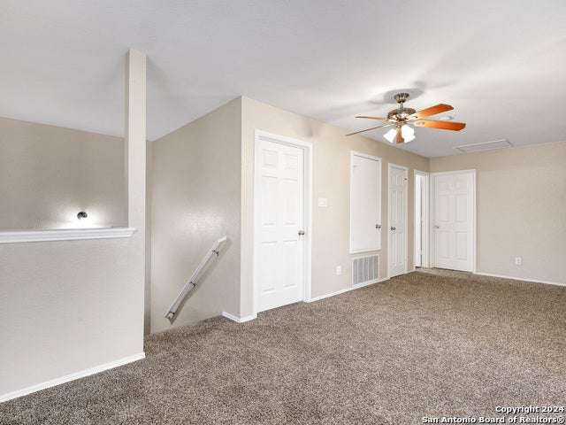 Welcome home - Well-maintained property in the desirable quiet Retama Springs neighborhood. This spacious residence features 4 bedrooms, 2.5 bathrooms, and plenty of room for comfortable living. The open-concept design includes a large family area downstairs, an oversized kitchen with an eat-in area and breakfast bar, stainless appliances, and durable laminate flooring in the kitchen. Features downstairs primary bedroom with ensuite with garden tub, separate walk-in shower, and large walk-in closet. Second family/game room upstairs. All rooms have walk-in closets and ceiling fans. Easy and quick access to Loop 1604 and Hwy 35.
