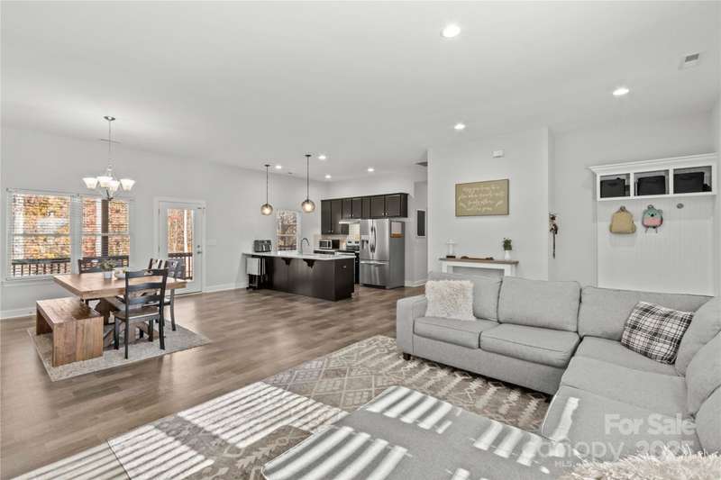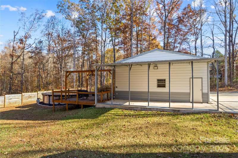 Beautifully Built Farmhouse-Style Home on approx. 4 Acres in the Sought-After Mooresville School District! Step into this beautifully crafted farmhouse-style home built in 2020 that perfectly blends timeless charm with modern comfort. Nestled on a rare approx. 4-acre lot, right in town, this property offers the best of both worlds - peaceful country-style living with the convenience of nearby amenities. The inviting front porch sets the tone for relaxed country living and offers the ideal spot to enjoy your morning coffee or unwind after a long day while taking in the serene surroundings. Inside, you'll find an open-concept layout filled with natural light, featuring quality finishes, spacious living areas, and thoughtful design details throughout. The stylish kitchen with its seamless flow into the dining and living spaces serves as the heart of the home - perfect for entertaining or family gatherings. Generously sized bedrooms provide comfort and privacy, while the primary suite offers a peaceful retreat complete with a luxurious ensuite bath. Outdoors, the landscaped yard and covered deck create the perfect backdrop for year-round enjoyment. The acreage provides endless opportunities whether you dream of gardening or simply enjoying the expansive space. This home offers everything you love about farmhouse living - modern elegance, warm character and inviting spaces made for making memories. Detached 3 car garage with oversized garage doors has electricity. Above-ground pool and pool deck included but no permits. Seller will remove pool and pool deck if buyer prefers. Don't miss the chance to make this one-of-a-kind property your forever home! Easy access and minutes to Lake Norman, shopping, I-77 and downtown Mooresville. Transferrable builder warranty!!