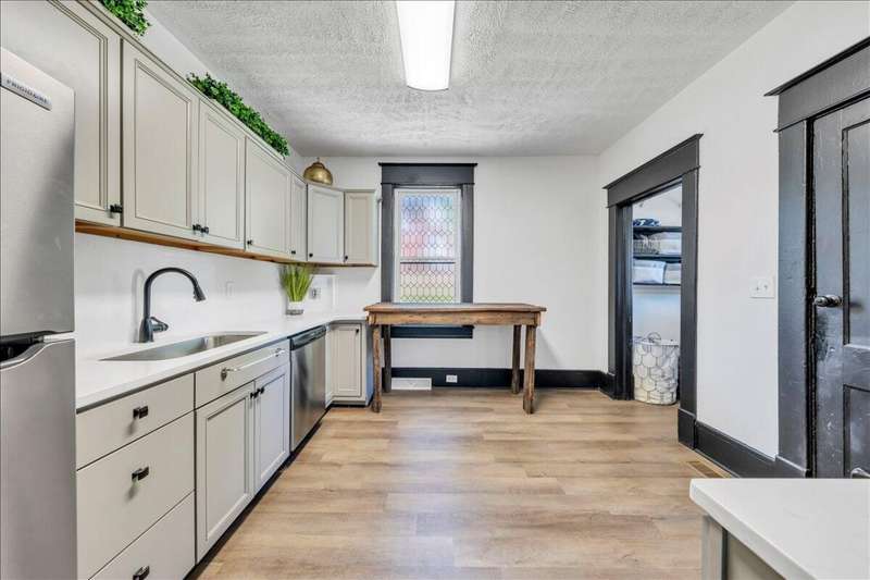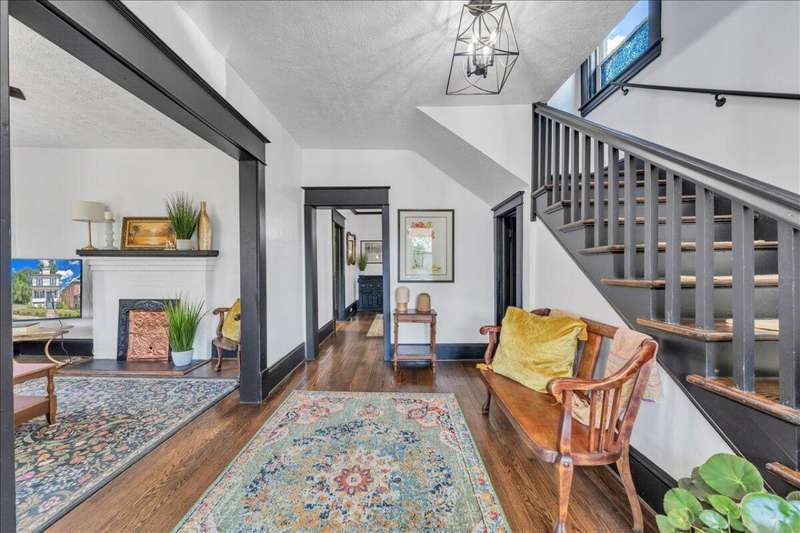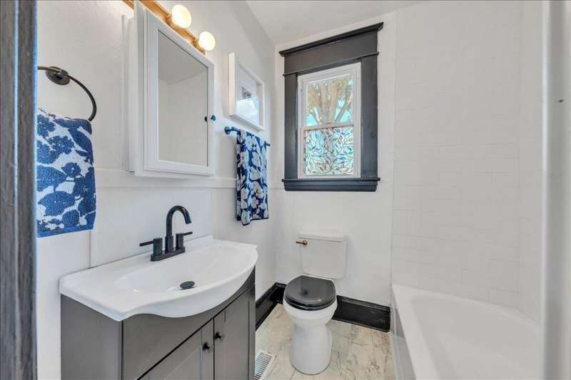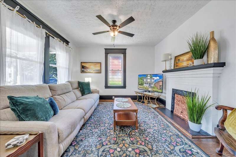 Beautifully renovated 4BR, 2BA brick foursquare in South East! This home features a spacious living room with fireplace, refinished original hardwoods, and an updated kitchen with quartz tops, newer cabinets, stainless appliances, and luxury vinyl tile. Bathrooms offer newer vanities, toilets, and re-glazed tubs, including a classic clawfoot. Renovated in 2022 with new roof, 200-amp service, high-efficiency gas furnace, electric heat pump upstairs, central cooling with new ductwork, fresh paint inside and out, new fixtures, most windows replaced, and gutters in 2025. Outside boasts a large concrete drive, fresh landscaping, partially fenced yard, alley access, and stunning views of the Roanoke Star and mountains. Move-in ready!