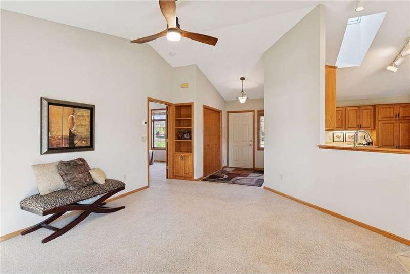 Spacious & stylish 1-level end unit townhome on cul-de-sac in convenient location near parks & trails. The sundrenched spaces & open design features a large foyer to welcome your guests, two generous living areas featuring a cozy gas fireplace, vaulted ceilings and sliders off the dining area open to a large South facing patio that your plants will love. Hard to find 3 BR layout offers a vaulted owners suite with walk-in closet & full bath w/spa tub & separate shower. A 2nd bedroom & 2nd full bath are located on the opposite side of the home for privacy & a 3rd large bedroom is just off the family room. The kitchen has tons of counter space & plentiful storage, including a handy corner pantry. The attached 2 car garage has a pull down stair to attic storage & all windows have custom blinds. Enjoy carefree living in this delightful, well-managed complex!