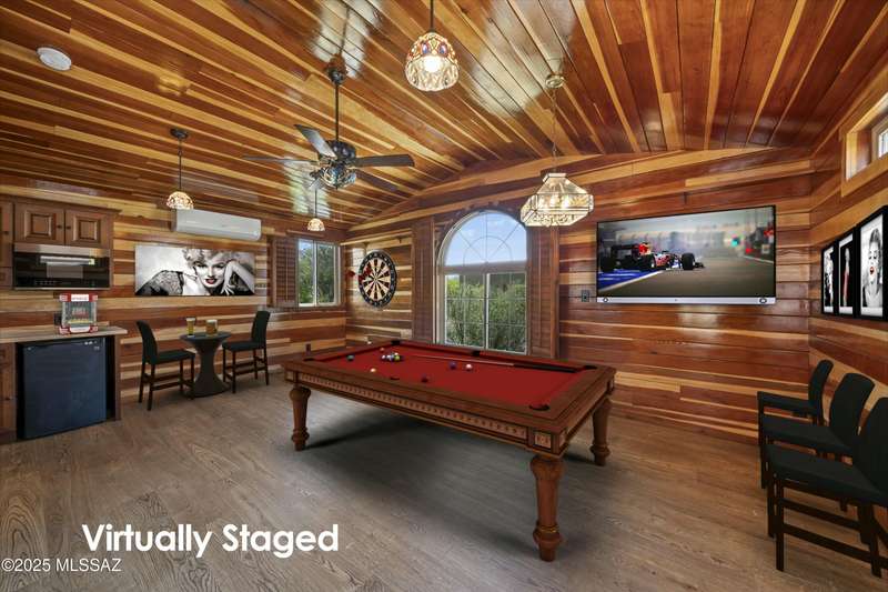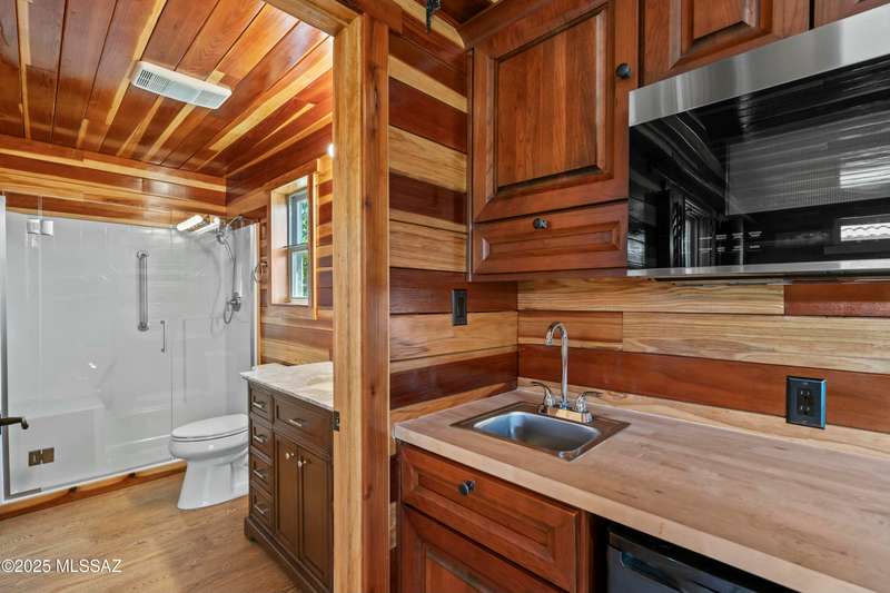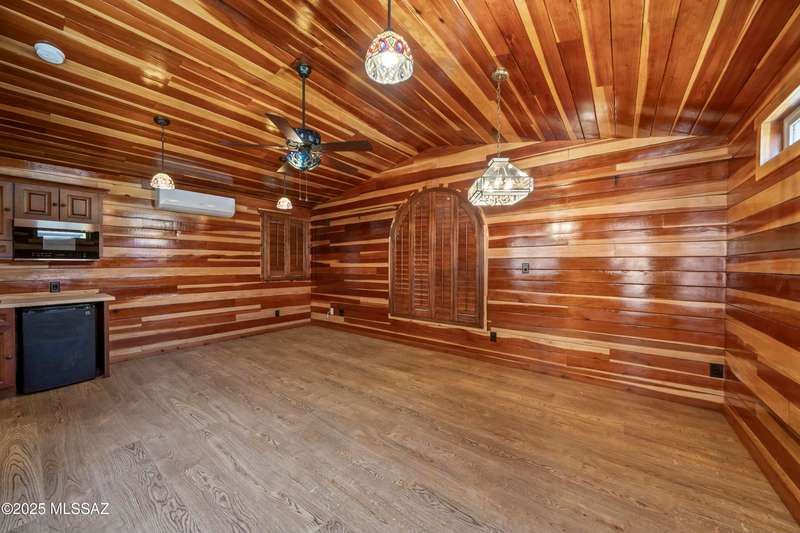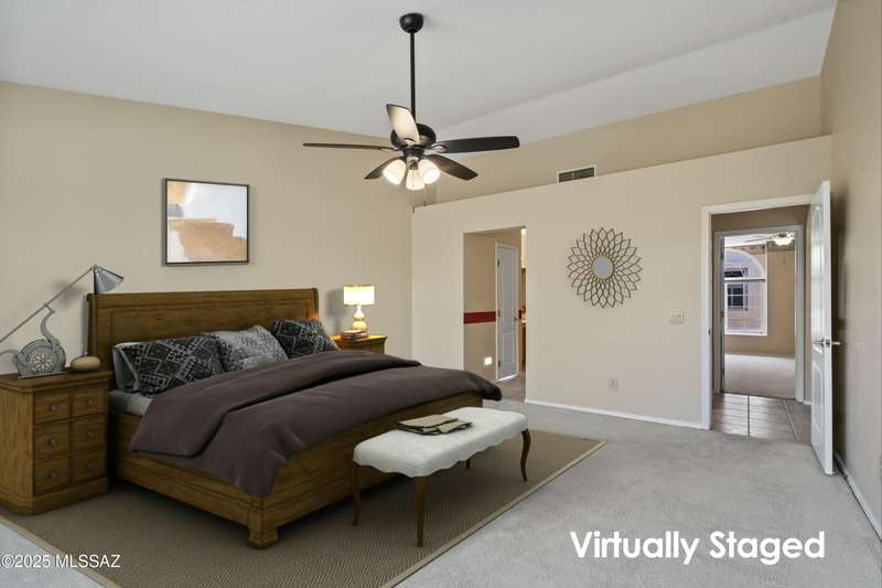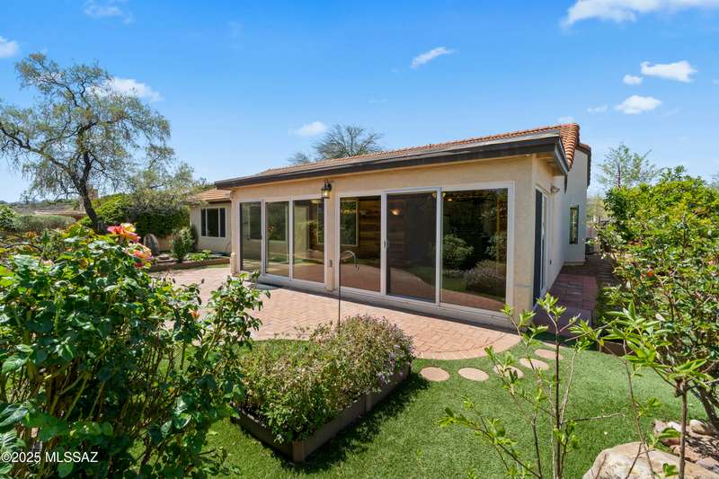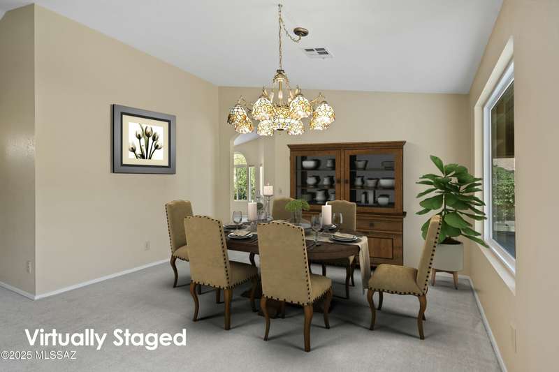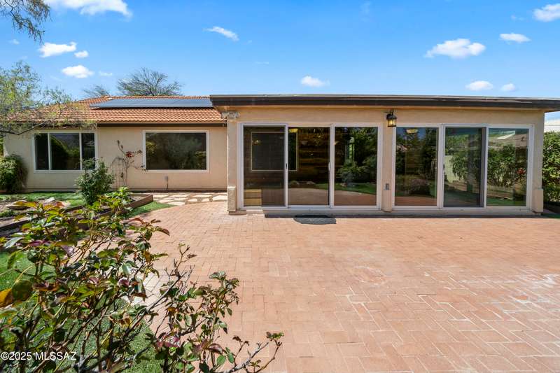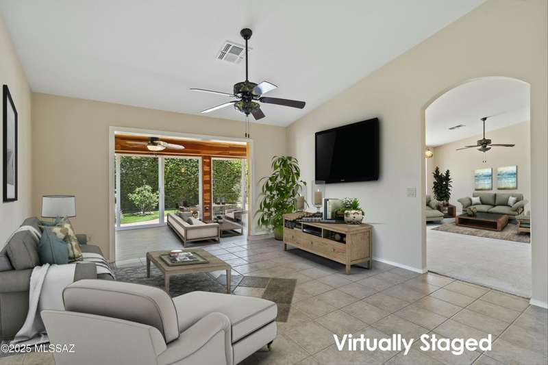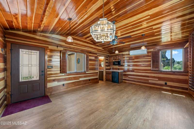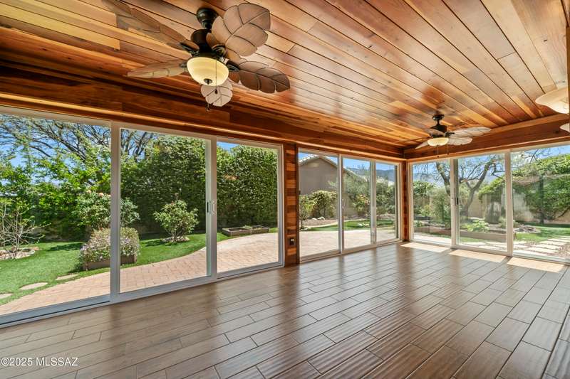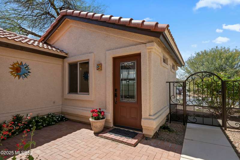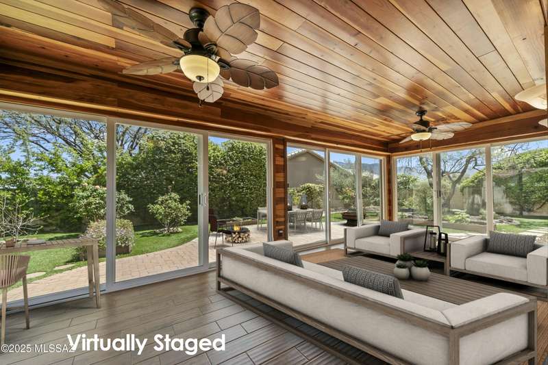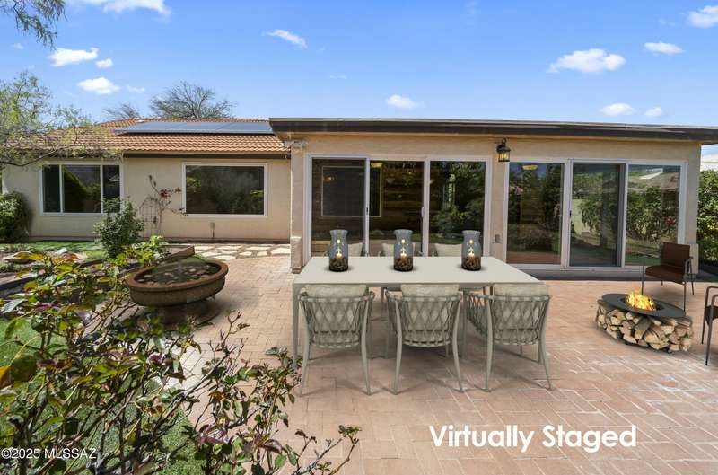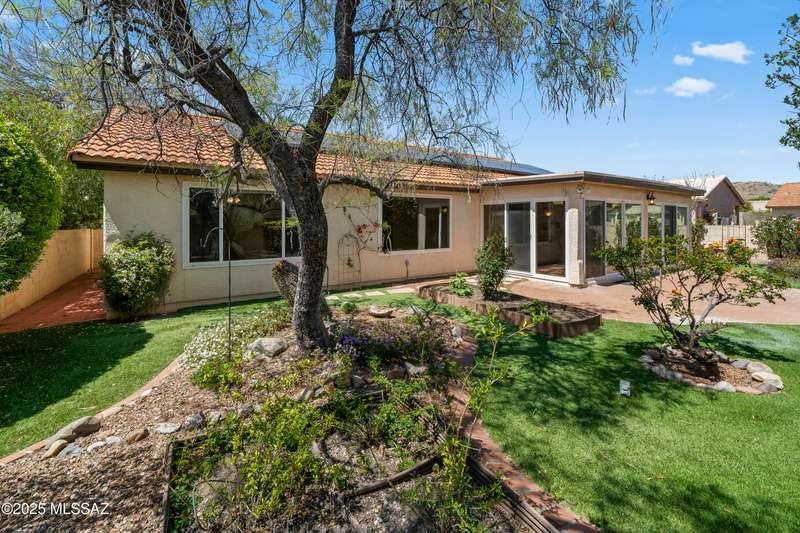 Must see Topaz on corner lot with mountain views from east facing back patio. Beautifully added sun room with solid redwood paneling and tongue and groove ceiling. Sun room has 4 sliding glass doors with screens for year round enjoyment. Recently built large casita with solid redwood paneling as well, perfect for your out of town guests. Back yard has well established fruit trees and rose bushes. Home has large kitchen with skylight and lots of cabinets. Hand painted back splash tiles in the kitchen. Laundry room has extra storage and counter space. Spacious primary bedroom with double sinks in en-suite bath and large walk-in closet. Leased solar keeps the AC bill very low in the summer heat.