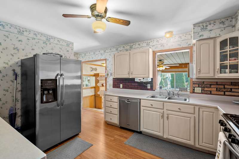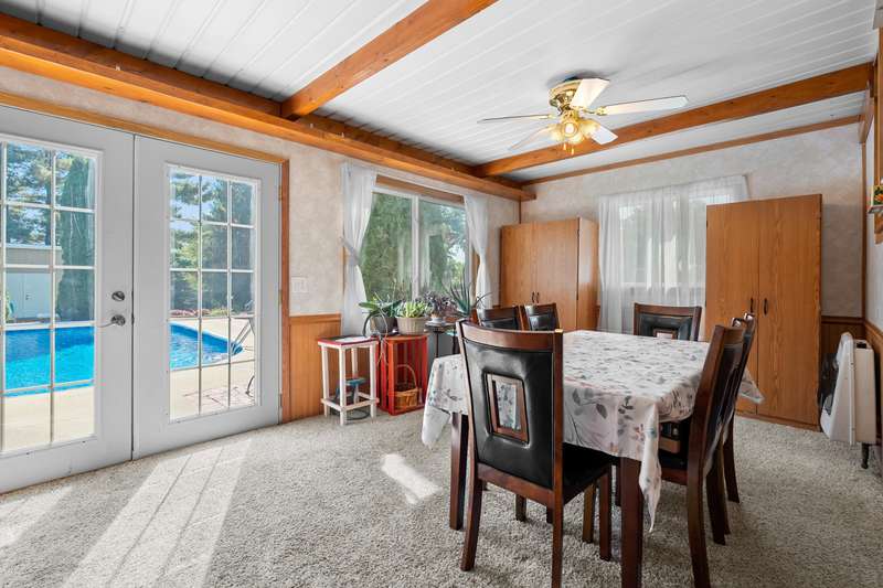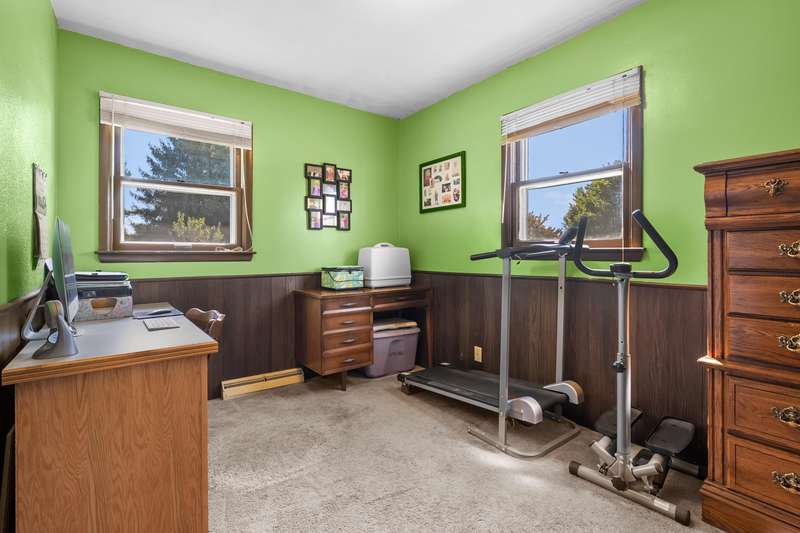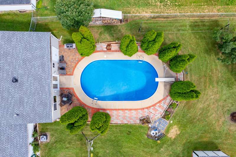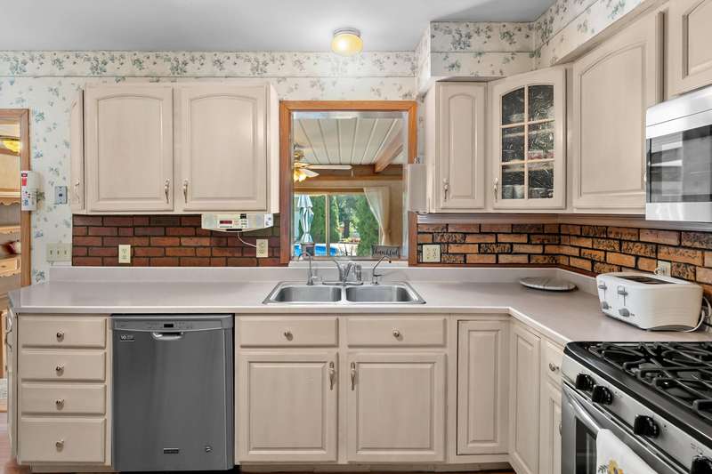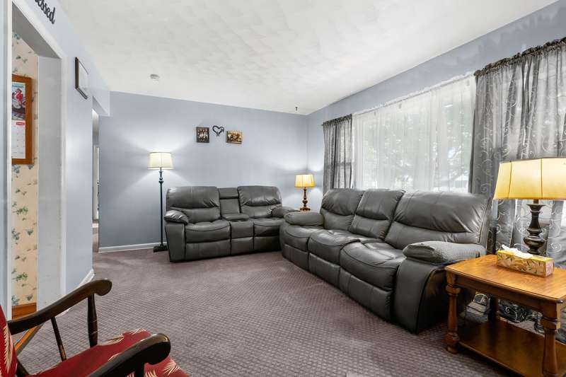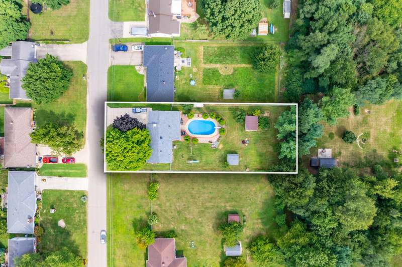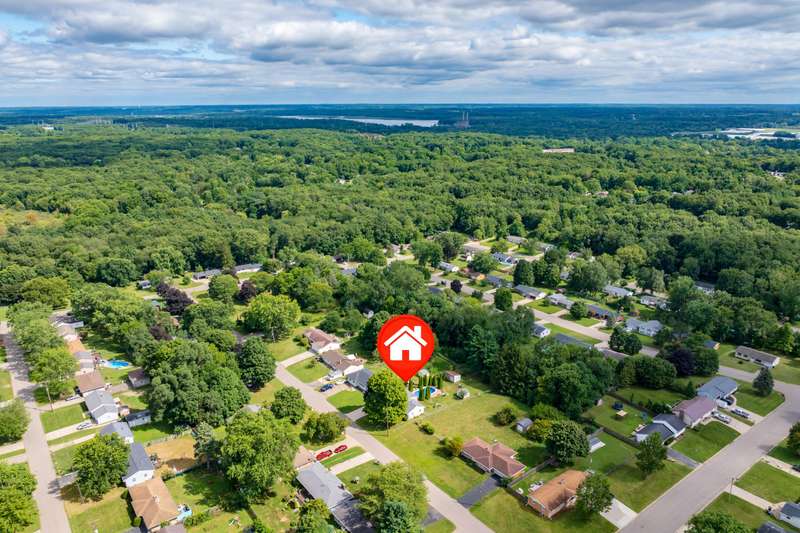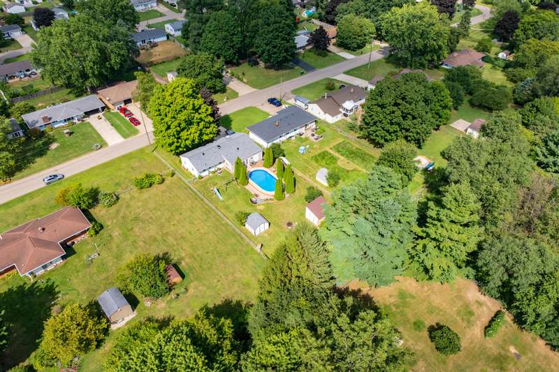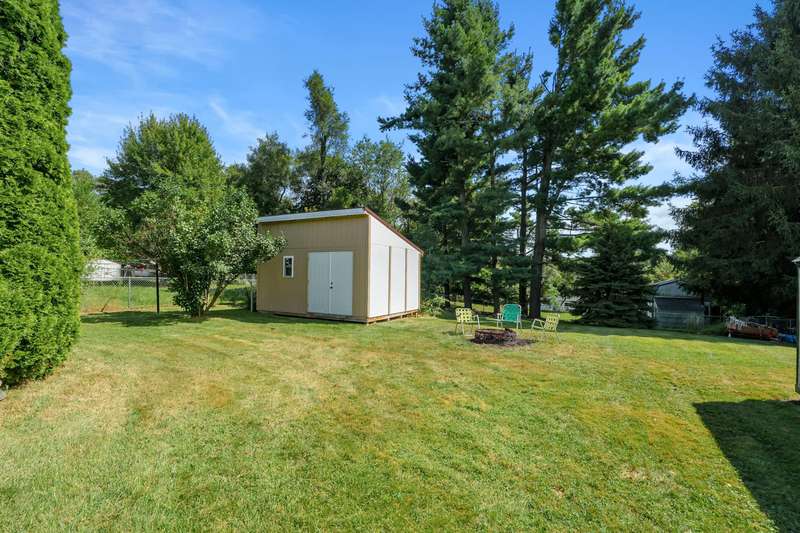 Incredible opportunity to own this well-maintained three-bedroom, two-bath home featuring a backyard oasis with an inground pool! Recent updates include a new roof (2024), pool liner (2023), and new living room carpet (2025). Enjoy peace of mind with a fenced backyard, two storage sheds, a Kinetico water softener, and a Reverse Osmosis system. The living room showcases plaster walls and a cozy wood-burning fireplace. The kitchen is equipped with stainless steel appliances and an abundance of cabinetry. Just off the kitchen is a spacious flex room-perfect as a formal dining room, additional living space, or home office. The lower level expands your living options with a large family room, a second finished room with a closet (no egress). Plenty of built-in shelving in the storage area. The attached garage includes extra storage and 220V electrical service. A separate workshop features cabinets, additional storage, and double doors leading to the backyardideal for projects or hobbies. Step outside to enjoy your private retreat: an inground pool, patio area, large yard with mature landscaping, berry bushes, and a playsetperfect for entertaining or relaxing. Conveniently located near schools, parks, shopping, and walking trails!