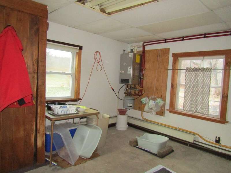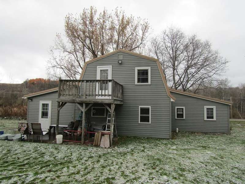 2 BR Barn style home in the country awaiting a new owner. A galley kitchen with a bar and a cozy dining room. Level yard to enjoy. There is a room that is not completed that was planned to be first floor bedroom with a bathroom. The small shed across the road has been used for a rental in the past.