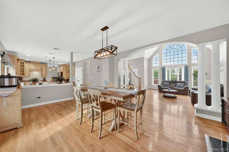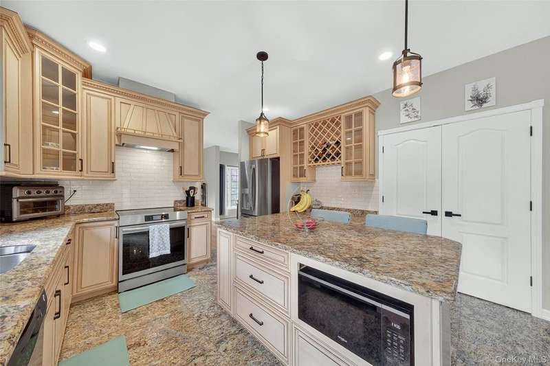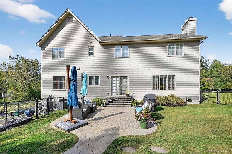 Welcome home to this spacious and well-maintained center-hall colonial located on a quiet cul-de-sac set on 1.8 acres. Freshly painted throughout, the home features 4 large bedrooms, 2.5 baths, hardwood floors across the main level and a comfortable layout, including a living room that opens to a dining area with a wood-burning fireplace. There is also a separate family room perfect for entertaining guests, hosting game night or watching movies. The updated kitchen offers granite countertops, brand-new tile backsplash, extended wood cabinetry, a large center island, and newer appliances including refrigerator, induction cooktop oven, and microwave (all approx. 2 years old), as well as a new reverse osmosis water purifier. A formal dining room just off the kitchen offers flexibility for an office or additional living space. Upstairs, the primary suite offers vaulted ceilings, recessed lighting, a large walk-in closet, and an en-suite bathroom with jetted tub and walk-in shower. Three additional bedrooms and a full bath complete this level. Additional features include central air and a full walk-out basement with high ceilings and poured concrete foundation, ideal for storage or finishing for additional living space.Best of all, you can spend the summer relaxing by your in-ground pool! (Owners had brand new pool liner installed Nov 2025) Other outdoor amenities include a stamped-concrete patio with separate seating area and pergola, fully fenced in back yard and an extended paved driveway leading to a 2-car attached garage. Situated in the Town of Newburgh with Marlboro Schools, and located close to hiking and biking trails, local wineries, fruit orchards and apple farms, this home is a perfect oasis from the stress of daily life. Come see why the Hudson Valley is such a great place to call home!