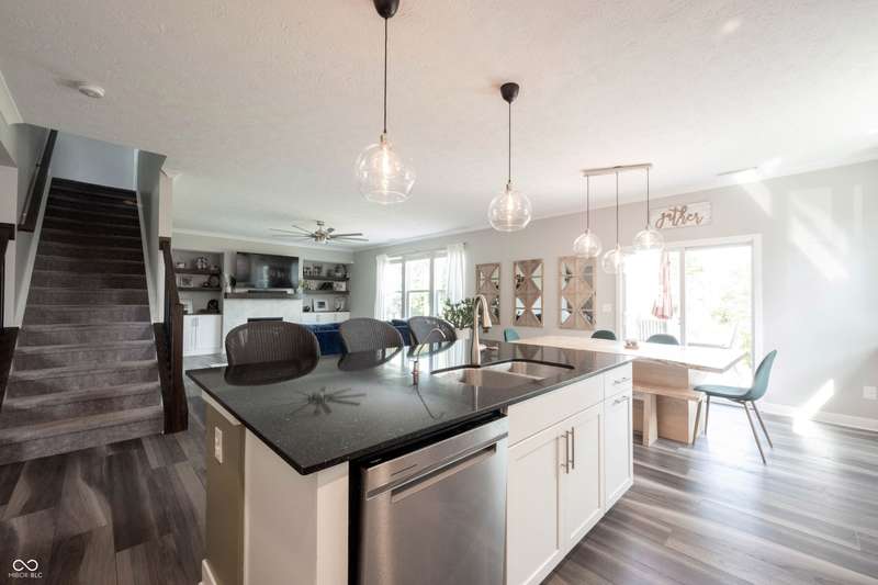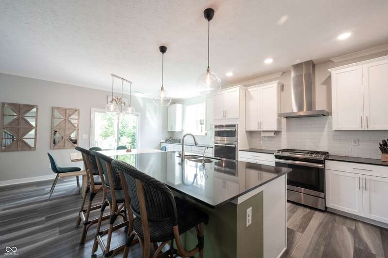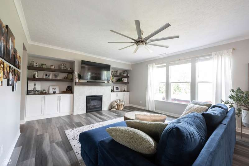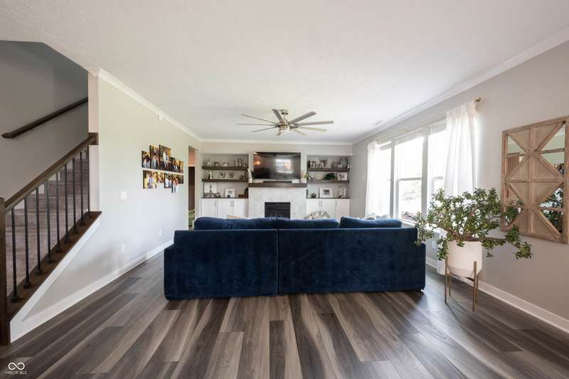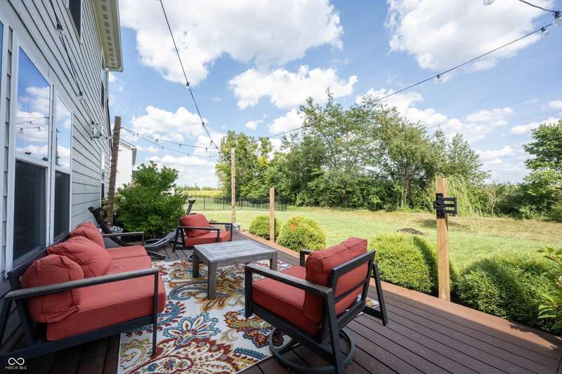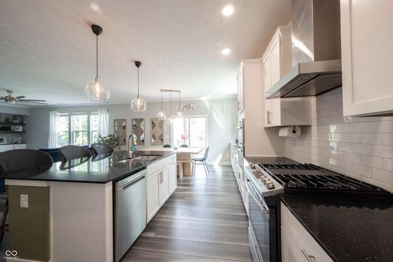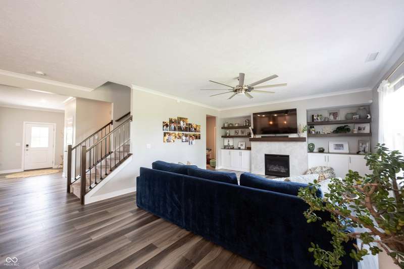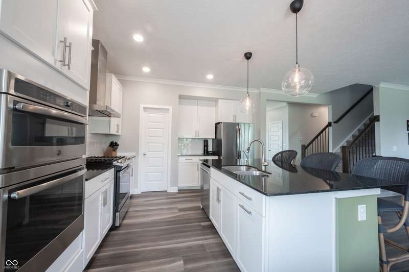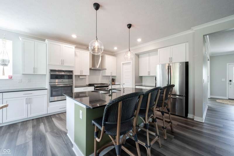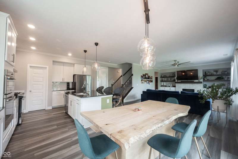 Why build new when you can move right in and enjoy a complete home with all the Bells and Whistles that come after closing! Welcome home to Steeplechase Estates, a spacious floorplan, 5 bedrooms with one on the main, and 4 baths! Open the door to NEW LVP flooring flowing seamlessly throughout the main! Greet your guests with a stunning and spacious Flex Room with custom sliding glass doors off the foyer! Step into your great room with a cozy gas fireplace, surrounded by custom built-in's floor to ceiling! Wall of windows overlooking your private backyard with a view of a mature treeline! Open to the kitchen and dining area, SO MUCH SPACE! Kitchen features crisp white cabinets complete with pull out drawers, subway tile backsplash, SS hood-vent, quartz counters, spacious breakfast bar/kitchen island with plenty of room for seating! Stainless Steel appliances, all included! Don't miss the spacious pantry with custom shelving! Dining area just off the kitchen with an extension of cabinets, creating a sideboard with plenty of extra storage! Just off the kitchen you can step out onto your composite deck and patio, a charming space to entertain this Fall! 5th Bedroom and Bath tucked off rear of the home and off family friendly foyer complete with boot bench. Upstairs: Loft for a second living space, 4 HUGE bedrooms all with generous sized closets, and each connected to a bath! Convenient upstairs laundry room with folding shelf and cabinets for storage! Owners' suite with tray ceiling, and ensuite bath, featuring dual sinks, quartz counters, linen closet, luxury floor-2-ceiling tile shower, and large WIC with custom wood shelving! 3+ car sideload garage, features a carriage garage and main garage with extra depth for 4th smaller vehicle, golf cart, or perhaps gym equipment? Too many options to list! Many custom details throughout this home, the after thoughts that come after building. Move right in to enjoy all the things the sellers did to make this their forever home!