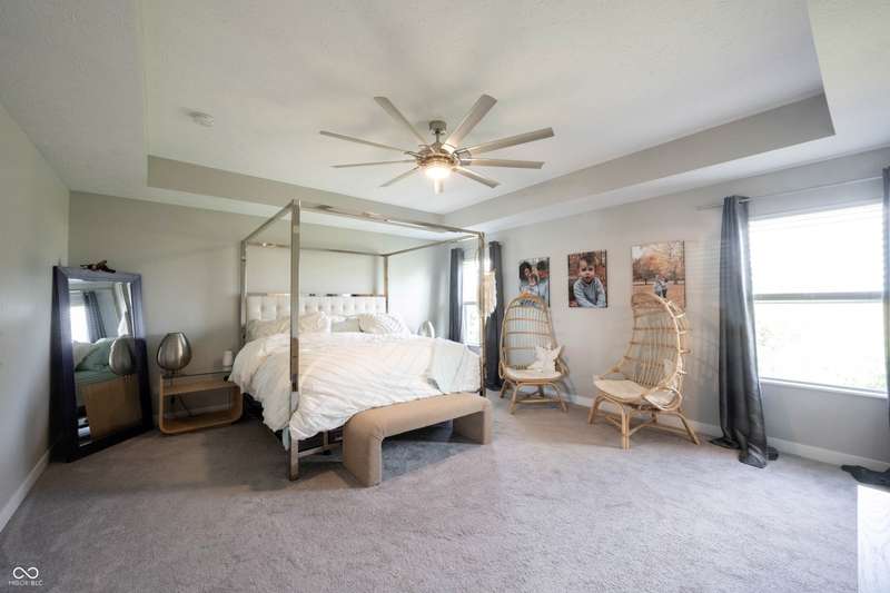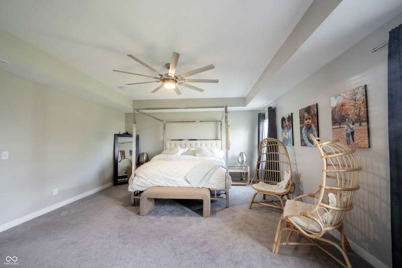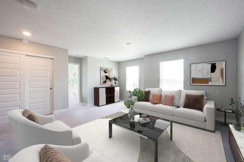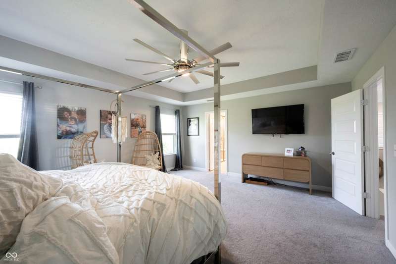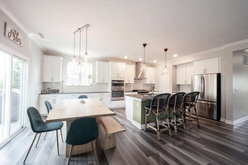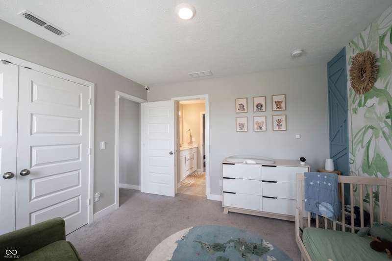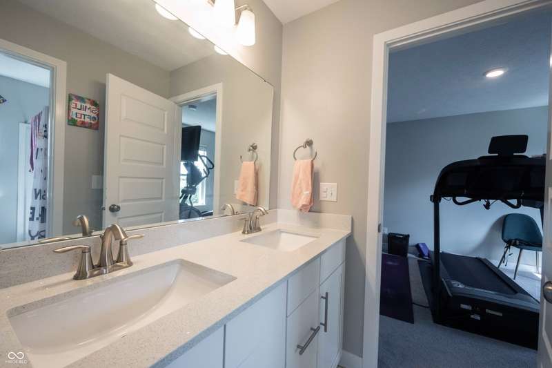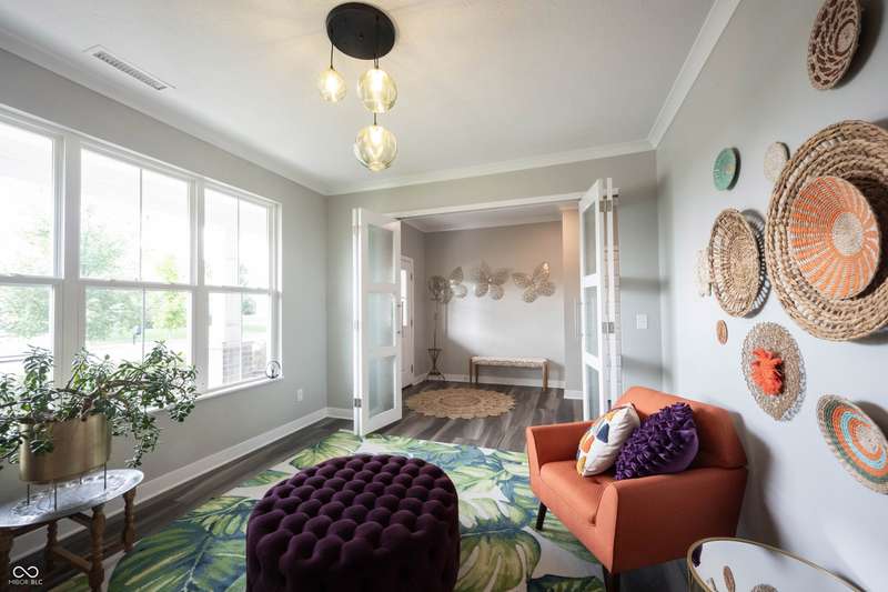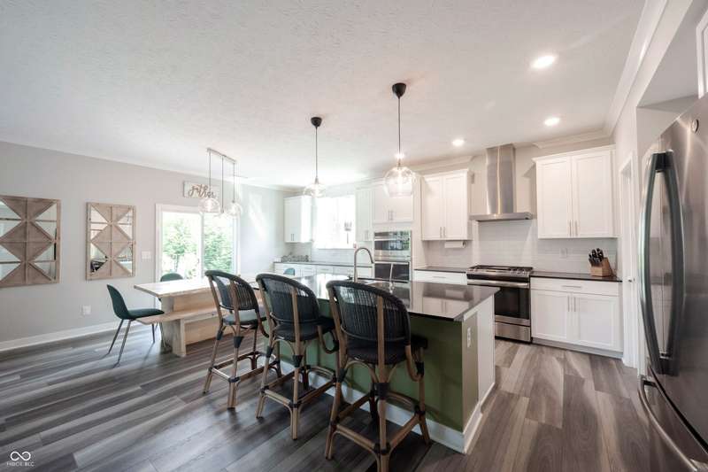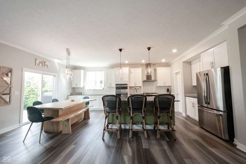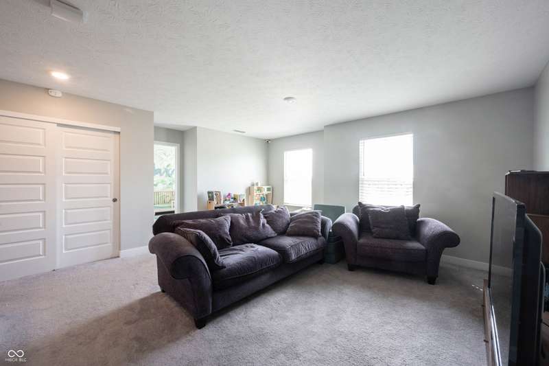 Why build new when you can move right in and enjoy a complete home with all the Bells and Whistles that come after closing! Welcome home to Steeplechase Estates, a spacious floorplan, 5 bedrooms with one on the main, and 4 baths! Open the door to NEW LVP flooring flowing seamlessly throughout the main! Greet your guests with a stunning and spacious Flex Room with custom sliding glass doors off the foyer! Step into your great room with a cozy gas fireplace, surrounded by custom built-in's floor to ceiling! Wall of windows overlooking your private backyard with a view of a mature treeline! Open to the kitchen and dining area, SO MUCH SPACE! Kitchen features crisp white cabinets complete with pull out drawers, subway tile backsplash, SS hood-vent, quartz counters, spacious breakfast bar/kitchen island with plenty of room for seating! Stainless Steel appliances, all included! Don't miss the spacious pantry with custom shelving! Dining area just off the kitchen with an extension of cabinets, creating a sideboard with plenty of extra storage! Just off the kitchen you can step out onto your composite deck and patio, a charming space to entertain this Fall! 5th Bedroom and Bath tucked off rear of the home and off family friendly foyer complete with boot bench. Upstairs: Loft for a second living space, 4 HUGE bedrooms all with generous sized closets, and each connected to a bath! Convenient upstairs laundry room with folding shelf and cabinets for storage! Owners' suite with tray ceiling, and ensuite bath, featuring dual sinks, quartz counters, linen closet, luxury floor-2-ceiling tile shower, and large WIC with custom wood shelving! 3+ car sideload garage, features a carriage garage and main garage with extra depth for 4th smaller vehicle, golf cart, or perhaps gym equipment? Too many options to list! Many custom details throughout this home, the after thoughts that come after building. Move right in to enjoy all the things the sellers did to make this their forever home!