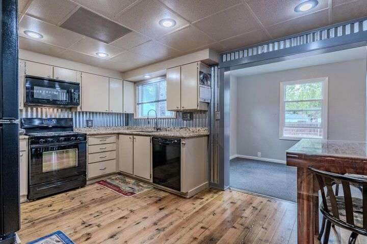 Move-in ready and full of charm, this beautifully maintained home features a new HVAC system, new gas heater, and a stylish rain glass sliding door between the kitchen and living room, every detail has been thoughtfully updated. The kitchen boasts granite countertops and Whirlpool appliances, washer/dryer, gas range, adjacent bonus room adds versatile living space. Throughout the home, you'll find fresh paint, hardwood floors, vaulted ceilings, and unique galvanized metal wainscoting in the living room for added character. The 10' x 20' covered front porch invites you to relax, while the private, fenced backyard with alley access is ideal for a potential ADU. With 1,044 sq ft, this home lives larger than its footprint and reflects true pride of ownership. One car garage, conveniently located, this is a opportunity you won't want to miss!