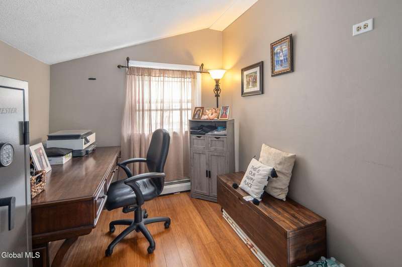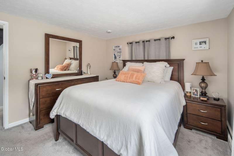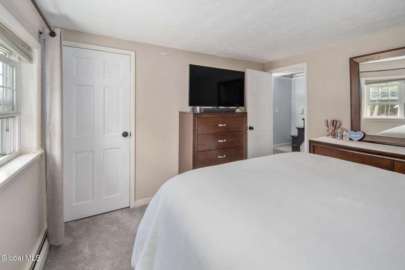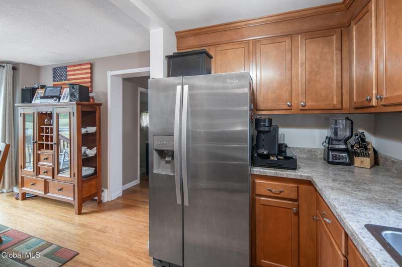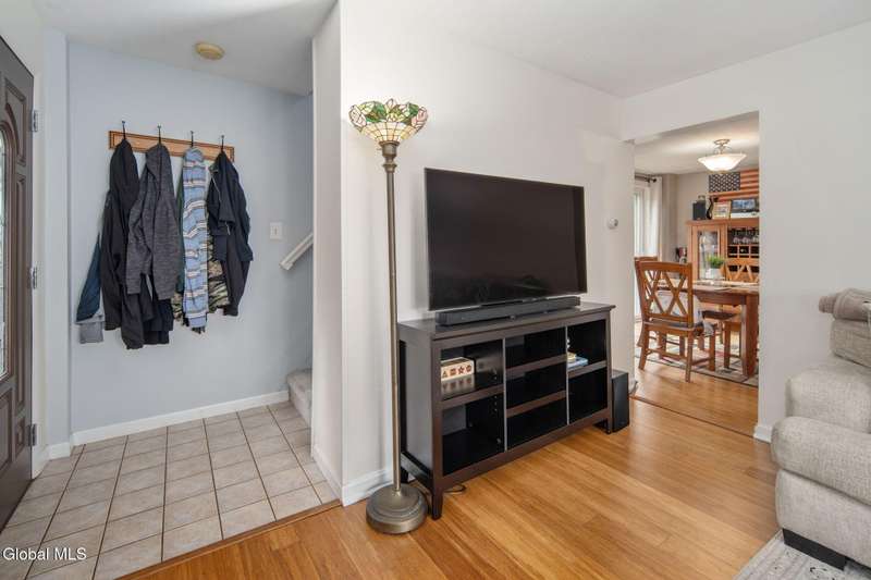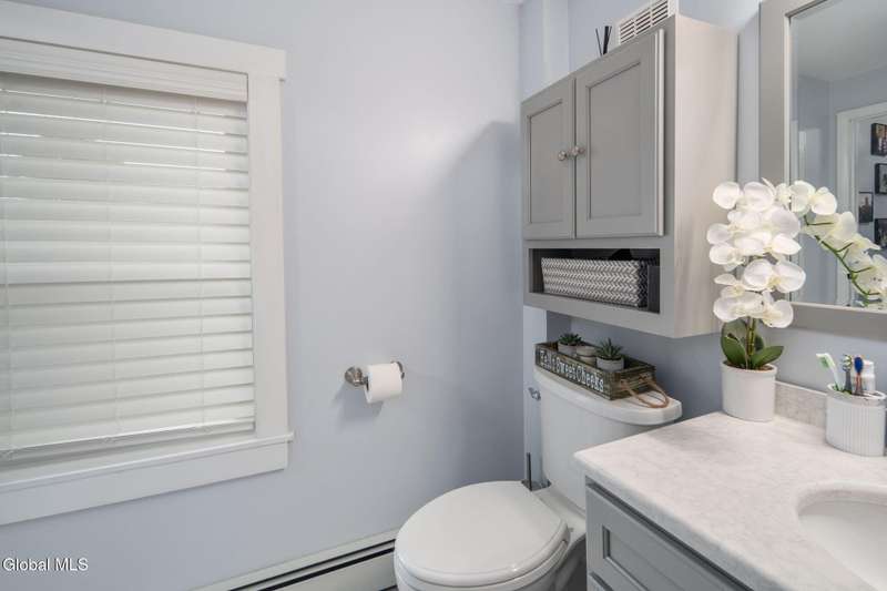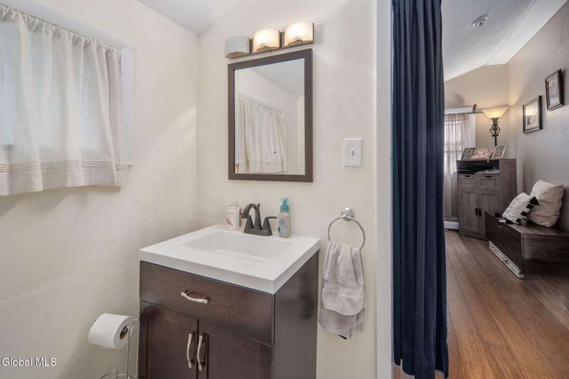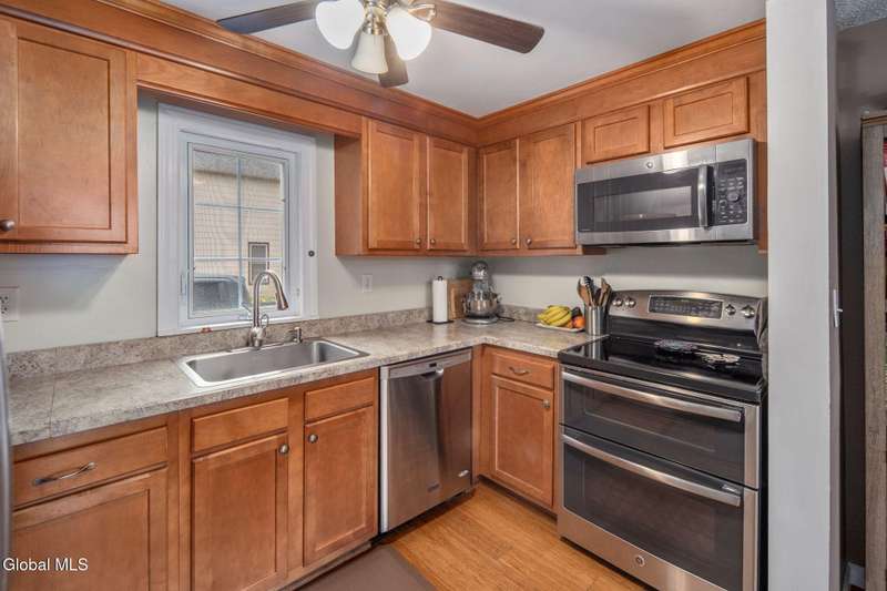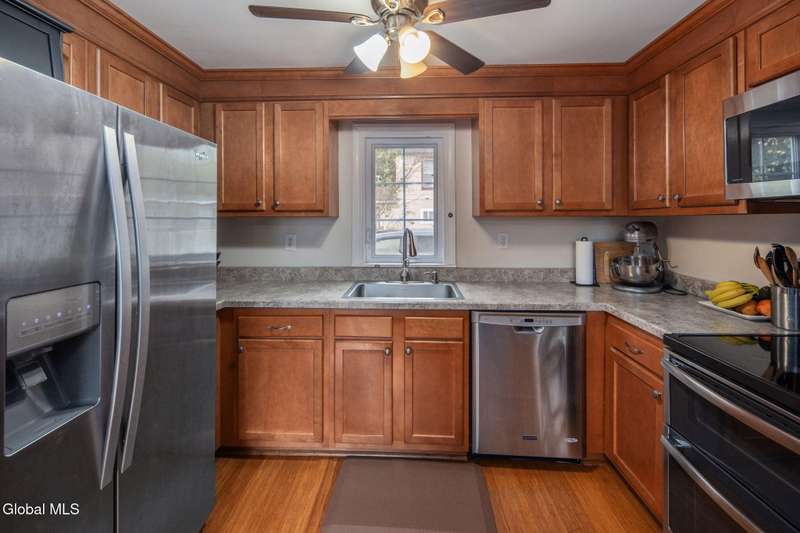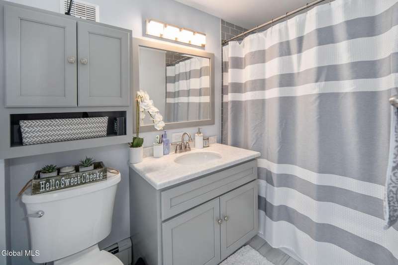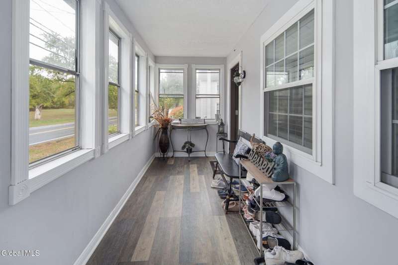 Welcome to this remodeled 2-bedroom, 1.5-bath home set in the award-winning Voorheesville school district! This charming home features many updates throughout, including an updated kitchen with stainless appliances and LVP floors. The finished walk-up attic area could easily be used as a third bedroom, office, or playroom. Enjoy the finished basement with a built-in bar for entertaining friends. There is a deck off the kitchen for grilling and eating outdoors, and an enclosed front porch for relaxing that provides a warm entrance in the winter months. Washer & dryer included, new hot water heater, town water. Enjoy overlooking a peaceful stream in your backyard throughout the year. Just minutes to all the area shopping malls and grocery stores.