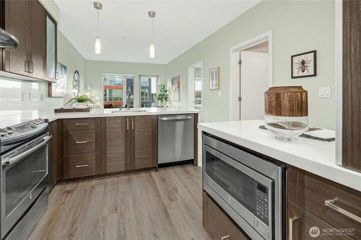 Top Floor South Facing 1 Bedroom PLUS DEN with secure parking and storage! Come live the urban lifestyle in Ballard's most modern Condo building. Secure Parking & XL Storage for all your gear included. Available Unfurnished (or Furnished along with kitchen supplies). 9 months, willing to consider longer/shorter. No smoking, pets considered. Other terms: Tenant pays electricity, water, sewer. Renter’s insurance required. Building offers rooftop deck w/ gas BBQs, concierge & designer lobby includes areas for meetings and lounging, & fitness room. To be accepted: Tenant must have 700 + credit score, 3:1 income ratio, no past delinquent rent payments, and no past evictions or eviction notices. Portable screenings not accepted.