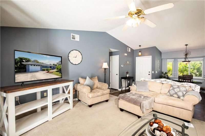 Welcome home to this lovely and immaculately maintained 3 bedroom/2 bathroom property! As you enter through the front door you will be drawn to the cathedral ceilings, bay windows, and french doors that provide ample natural light throughout the entire house. The home features both tile and carpet, upgraded stainless steel appliances, new central air/heat and is newly painted both inside and out which makes the home 'turn key, ready for buyers to move right in! The kitchen has countertop seating as well as a large space to accommodate a kitchen table. The spacious master bedroom has a walk-in closet and a bathroom with a recently updated walk-in shower for easy access. The two additional bedrooms and bathroom are perfect size. Lastly, there is an attached one car garage with storage and laundry hook up.