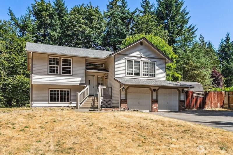 Nestled at the end of a paved driveway is this charming property, featuring a 4-bedroom, 2.5-bath, 1,990 sq ft home on 1.70 acres providing ample privacy with its tree-lined surroundings. Updates include a new roof in 2023 & a 4-bedroom septic in 2022. The spacious living room boasts a vaulted ceiling, hardwood floors & a cozy gas fireplace. Enjoy the serenity of nature from the deck that overlooks the tranquil woods, all situated in a quiet & private setting in East Port Orchard. It’s conveniently located near the Seattle Ferry & local amenities. Huge yard with fruit trees & plenty of room for a garden & to build a garage/shop, along with ample parking space, including room for RV & boat. Electric vehicle charging station is in the garage.
