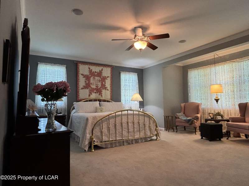 Gorgeous, well-kept 5 Bed 2-story w/4 baths. 1st floor office & master, 2 fireplaces, family room w/fireplace for gathering in kitchen area. Vaulted Living Room w/balcony. Nice Laundry w/Pantry nearby. Beautifully decorated. Beautiful vaulted Sunroom w/wood ceiling. Pretty landscaping. Master has walk-in shower & jetted tub. Hardwood floors, eat-in area in Kitchen, generator. This is a MUST SEE!!