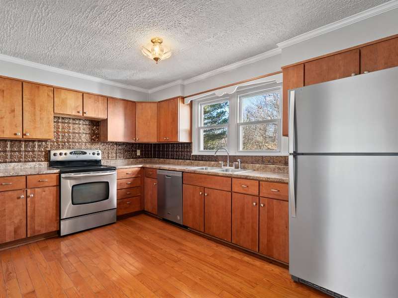 Discover the perfect blend of comfort, affordability and convenience in this charming ranch-style home, ideally situated just off North Main Street in the heart of Canton. Boasting a durable brick and vinyl exterior complemented by a sleek metal roof, this well-maintained 1,200+ square foot residence offers single-level living at its finest. Step inside to find four generously sized bedrooms and two full bathrooms, providing ample space for family, guests, or a home office. The formal living room welcomes you with its inviting atmosphere, while the cozy den area features a wood stove fireplace insert, perfect for chilly evenings and creating lasting memories. The spacious kitchen is a delight, equipped for everyday meals and entertaining alike. Extend your living space into the unheated four seasons room, ideal for year-round enjoyment of the outdoors from the comfort of home. Additional highlights include an efficient oil furnace with central air conditioning for optimal climate control, a convenient side patio area for outdoor relaxation and barbecues, and reliable city water and sewer services. The full basement offers abundant storage and potential for customization, along with a single-car garage for secure parking and easy access. This property combines timeless ranch-style appeal with practical features, making it an exceptional opportunity in a prime location close to local amenities, schools, and commuter routes. Don't miss your chance to own this move-in-ready gem.