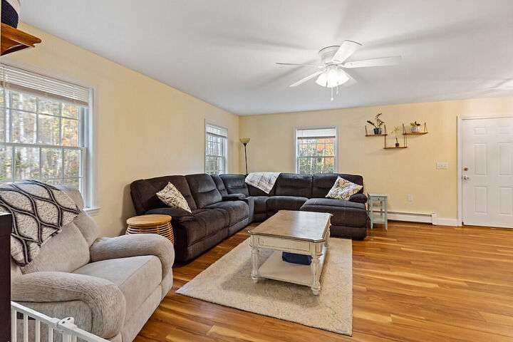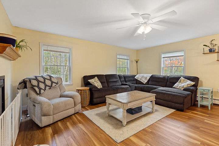 Spacious and inviting, this beautifully maintained home offers over 2,500 square feet of comfortable living space on more than 2.5 acres of land in a quiet Winterport neighborhood. Featuring 3 bedrooms, 2.5 baths, and a bonus room above the attached 2-car garage, there's plenty of room to spread out. The open-concept main living area is warmed by a two-way propane fireplace connecting the dining and living rooms—perfect for cozy evenings or entertaining guests. Enjoy the convenience of a full foundation offering abundant storage and workshop potential. Relaxing outdoors on the back deck; in the fenced-in backyard is ideal for pets, play, or gatherings. Peaceful and private yet convenient to Bangor and the coast, this property offers the ideal blend of country charm and modern comfort—ready to welcome you home.