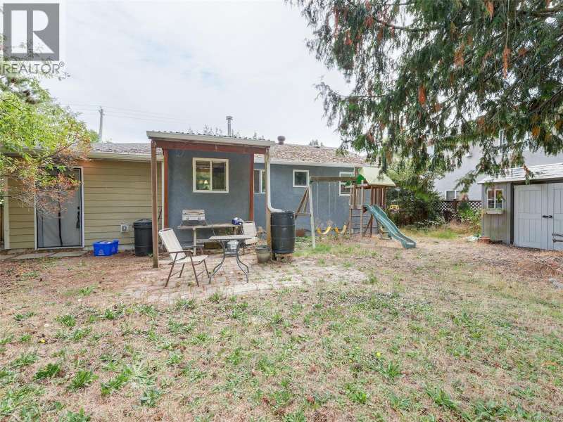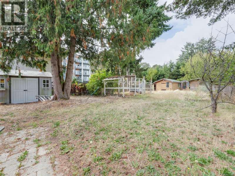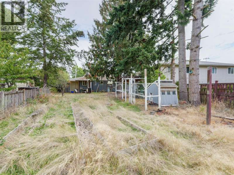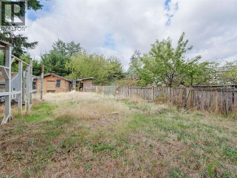 This charming, 3-bed / 1-bath home is great for those seeking a central location and lots of outdoor space. With a flat, fenced, west facing backyard, you will find a great space for gardening, relaxing or entertaining. Inside, the floorplan is extremely functional, with 3 spacious bedrooms, a mud room, separate laundry room, and a bright kitchen that opens to the living area providing a welcoming atmosphere, perfect for relaxing or entertaining with a cozy wood stove for those winter evenings. Ideally located across from Centennial park, enjoy the convenience of having a huge park across the street from your doorstep. Plus, close proximity to downtown Langford means you'll have easy access to shops, restaurants, and entertainment options. Plenty of parking on the gravel driveway or on the street. Municipal sewer is connected, and the neighboring property is also for sale: inquire with Langford about your options for acquiring both properties! (id:58403)