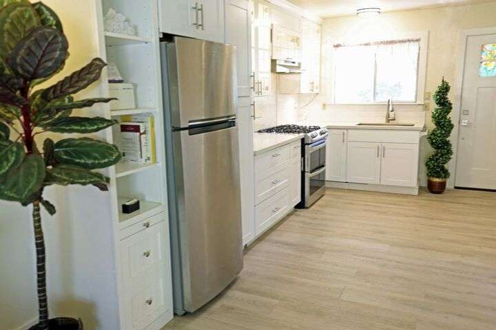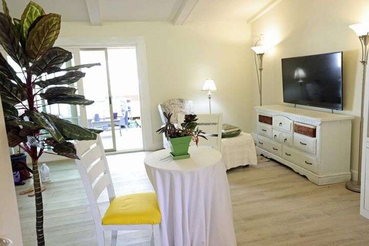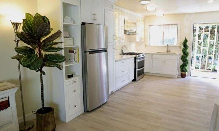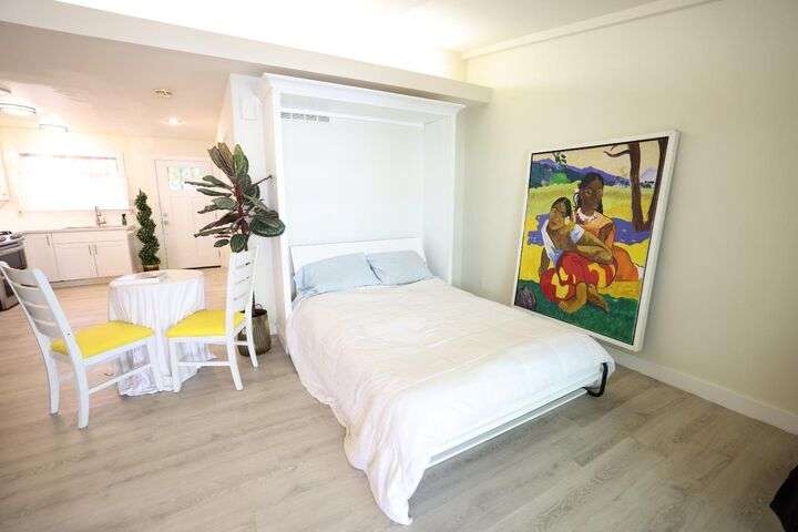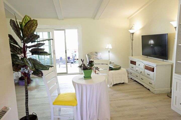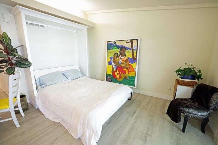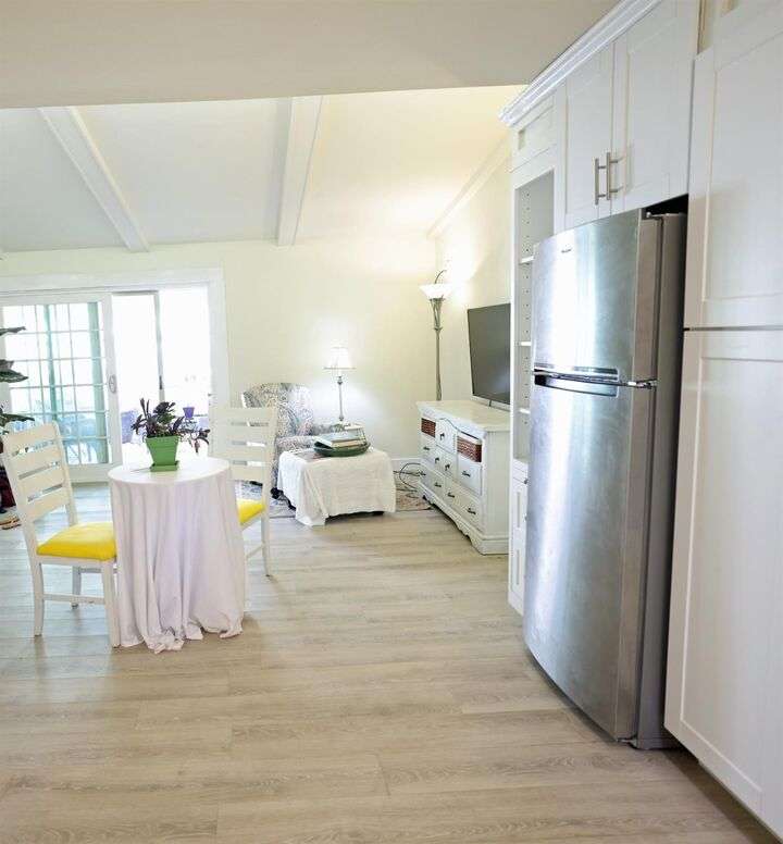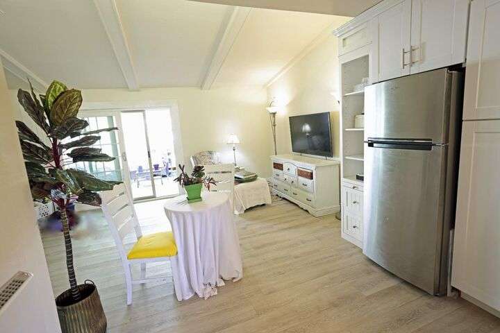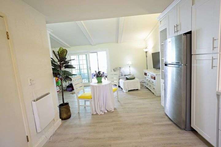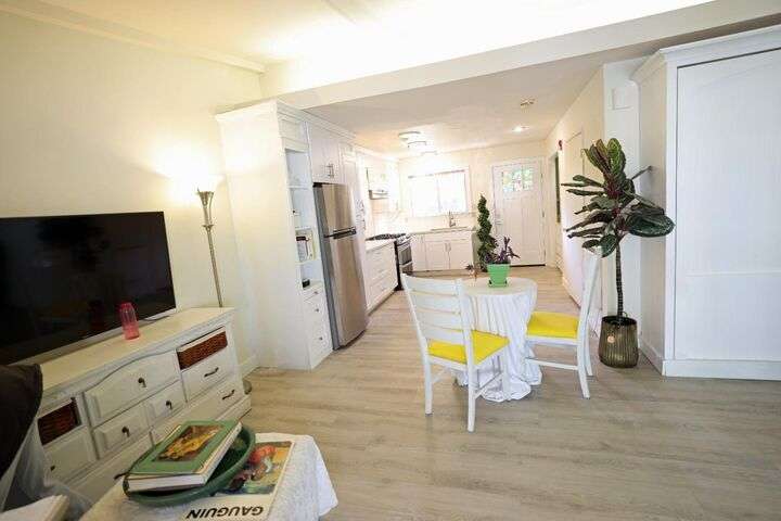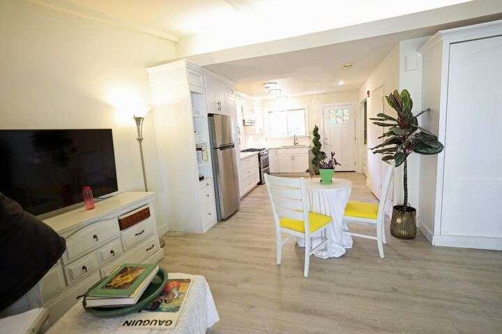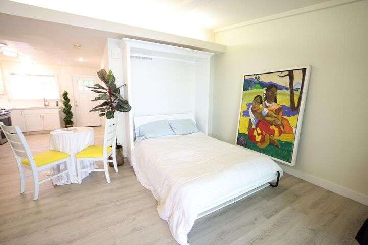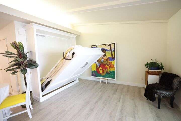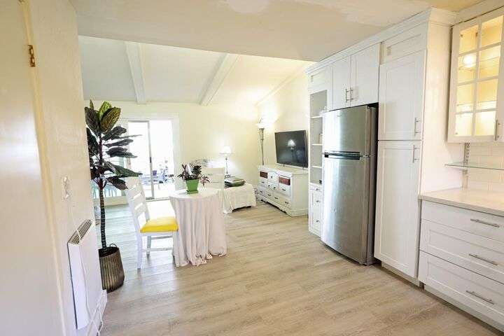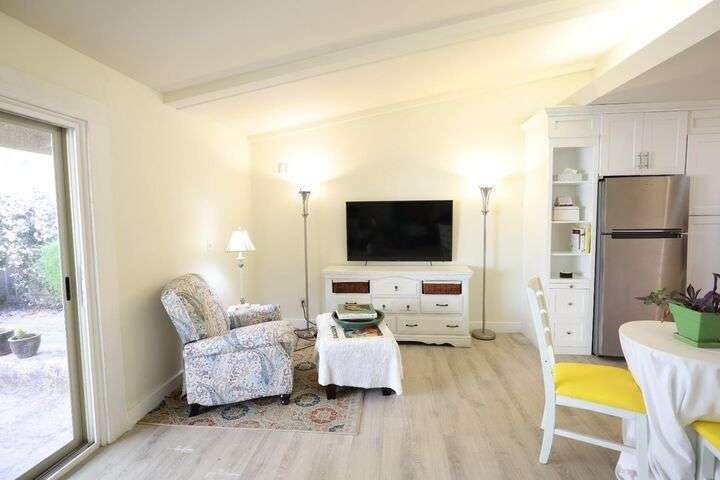 Welcome to Hacienda Carmel. This charming studio has features which includes; a hydraulic queen size Murphy-bed. The bed is equipped with easy lift and pull down. The kitchen has been remodeled to open up the entire space. Gas hook up from electric for the beautiful stainless steel, double gas stove and convection oven. It also has glue-less vinyl flooring, beautiful quartz countertops, unique and charming sunny patio, stainless steel refrigerator, and skylight. This studio sits close to Casa Central and dog park with picturesque hiking and walking trails. Located a short drive to restaurants, golf, shopping, the beach, and all the Monterey Peninsula.