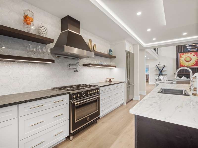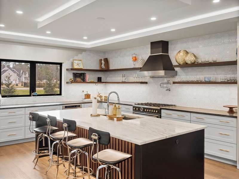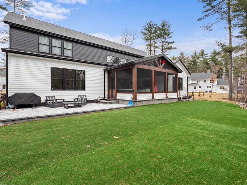 Welcome to Falcons Ridge! Rowley s most desirable neighborhood. 39 Taylor Lane offers the perfect blend of custom design, high-end finishes, and everyday functionality. This stunning home showcases a chef-inspired kitchen with elegant marble countertops, custom cabinetry, and premium Bertazzoni Heritage Series appliances, making it a true centerpiece for entertaining and daily living. The custom wood wall accents in the living room, family room, and kitchen island add warmth and character, elevating the interior with thoughtful detail. Step outside to enjoy the private 400-square-foot patio and low-maintenance synthetic turf, a perfect setup for gatherings, play, and pet-friendly enjoyment. A standout feature of the home is the charming 3-season porch, complete with a cozy wood-burning fireplace ideal for relaxing mornings or cool New England evenings. Retreat to the spacious primary bedroom suite, which boasts a luxurious primary bathroom and an impressively large walk-in closet.